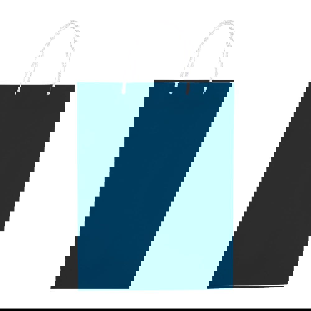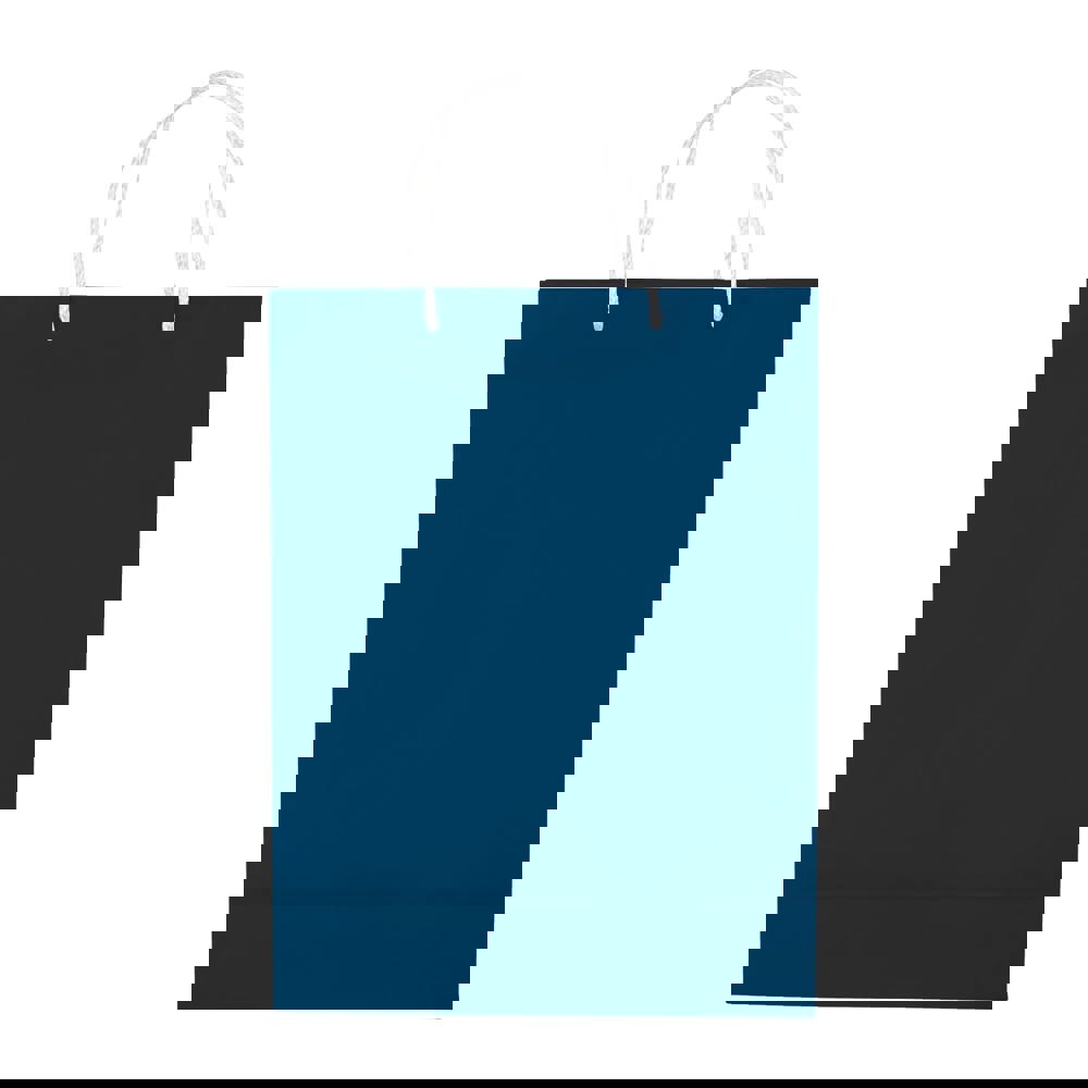 Grote papieren tas met hengels van gevlochten touw in wit en zwart. Groot drukoppervlak aan beide zijden. Stevige tas. Glossy gelamineerd.