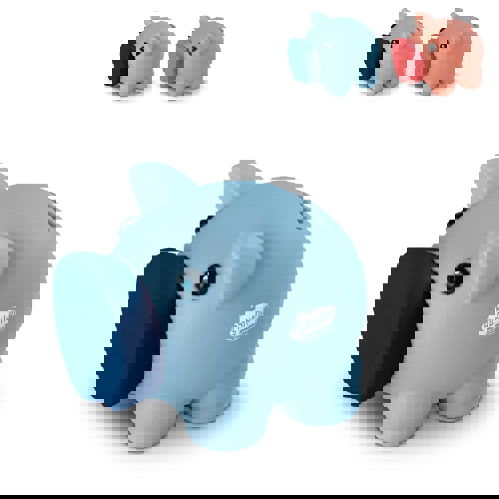 Klein spaarvarken van kunststof. Vanaf 5.500 stuks custom-made kleuren mogelijk.