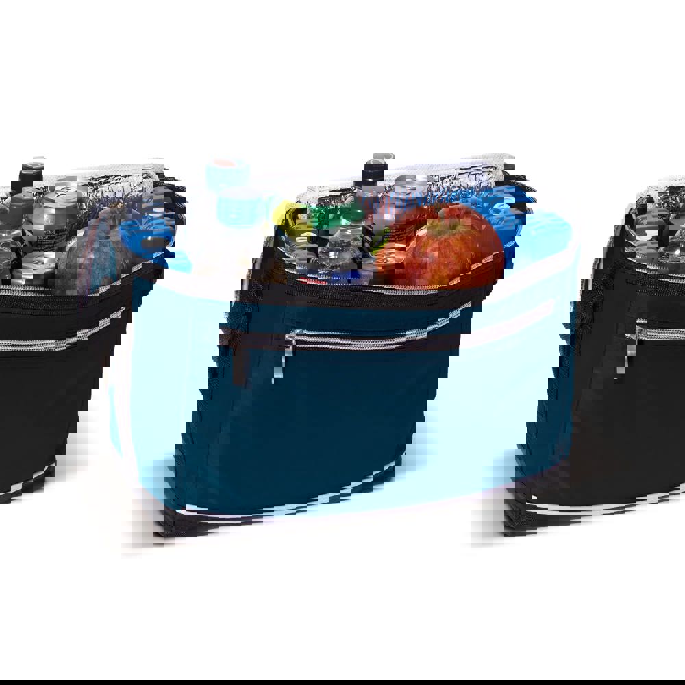 420D polyester koeltas met verstelbaar schouderhengsel (1200x30mm). Een groot koelvak en een klein vakje aan de voorzijde van de tas, beide afsluitbaar door middel van een rits. Compact formaat om mee te nemen.