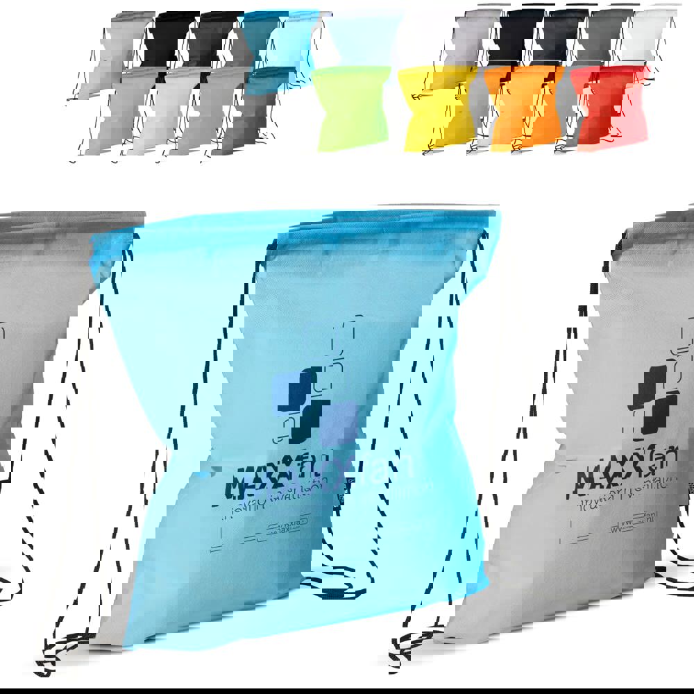 Lichtgewicht rugzak van non-woven materiaal. Tas is voorzien van zwarte hengsels.