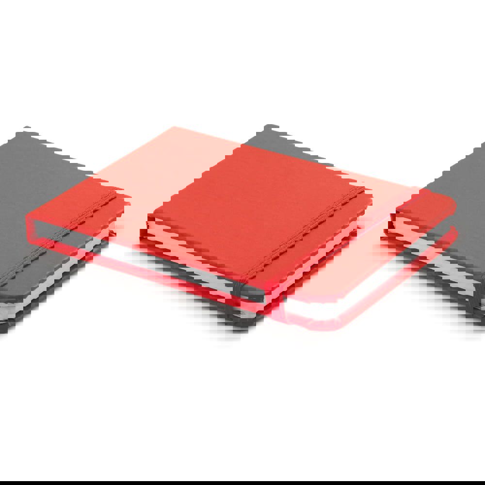 Handig schrijfboekje in zakformaat met verticaal elastiek en gestreept papier.