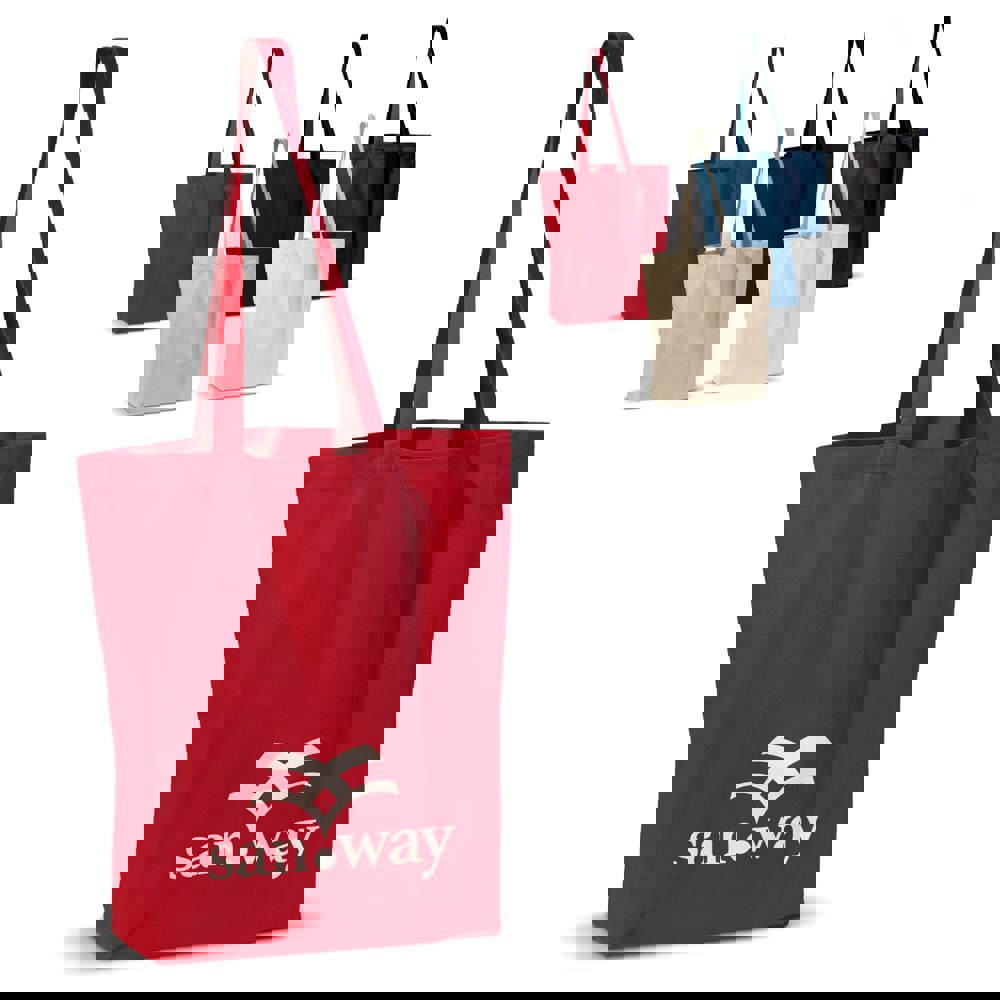 Rechthoekige katoenen canvas draagtas met lange hengsels. Van hoogwaardige kwaliteit.