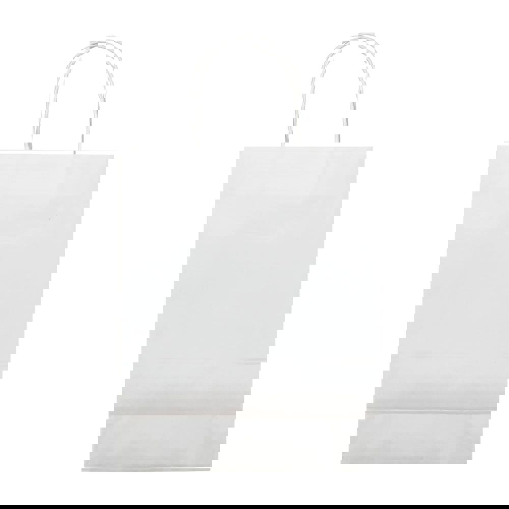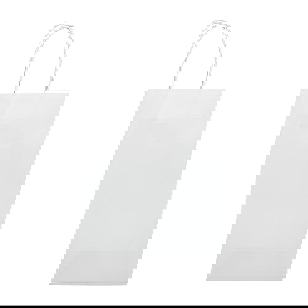Middelgrote mat papieren draagtas met hengsels van gedraaid papier. Tas heeft een ecologische look. Geschikt als geschenk- en cadeautas. FSC-gecertificeerd.