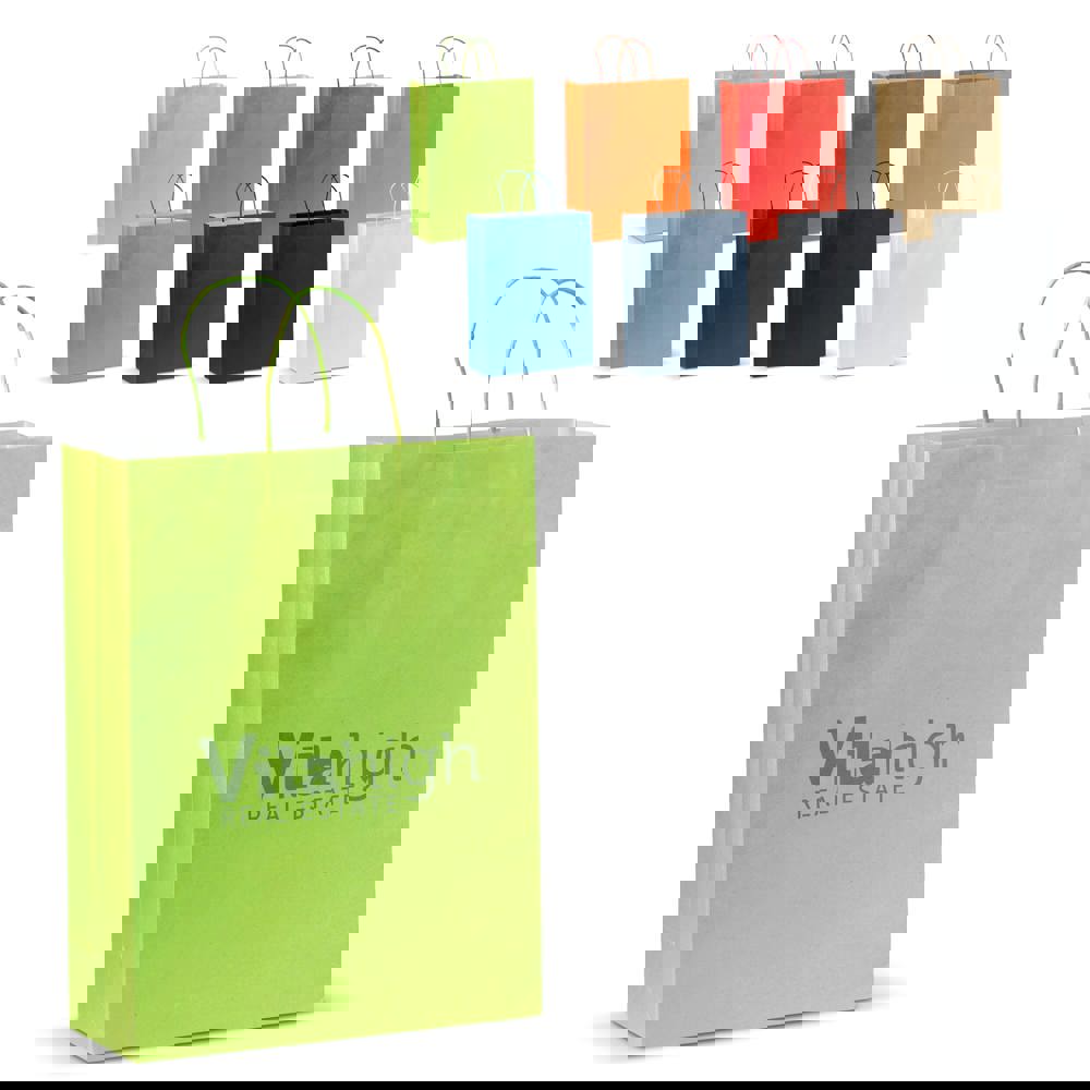 Grote mat papieren draagtas met hengsels van gedraaid papier. Tas heeft een ecologische look. Geschikt als geschenk- en cadeautas. FSC-gecertificeerd.