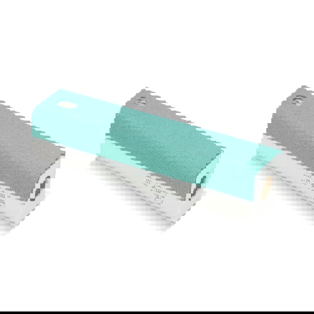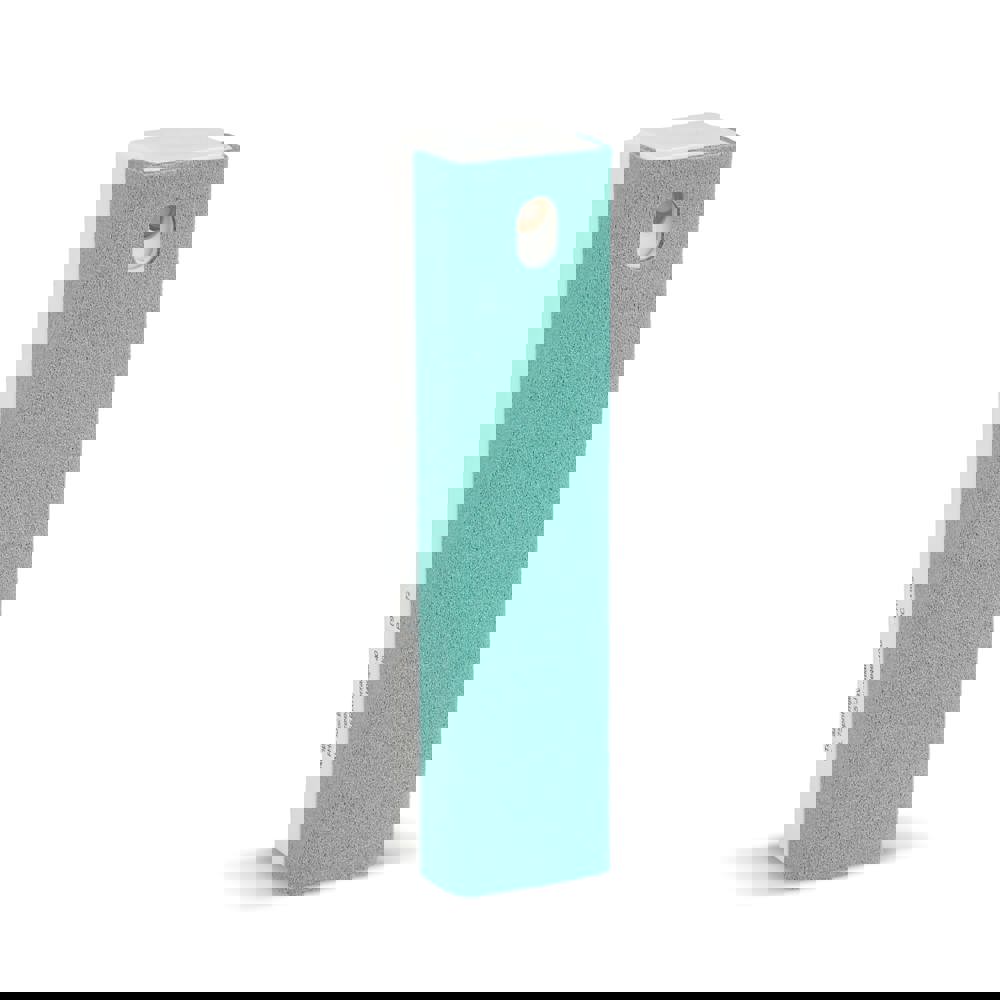Rechthoekig blokje met schoonmaakspray en microfiber doekje in n voor het reinigen van allerlei beeldschermen.