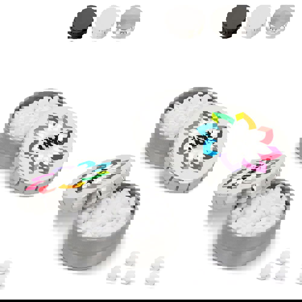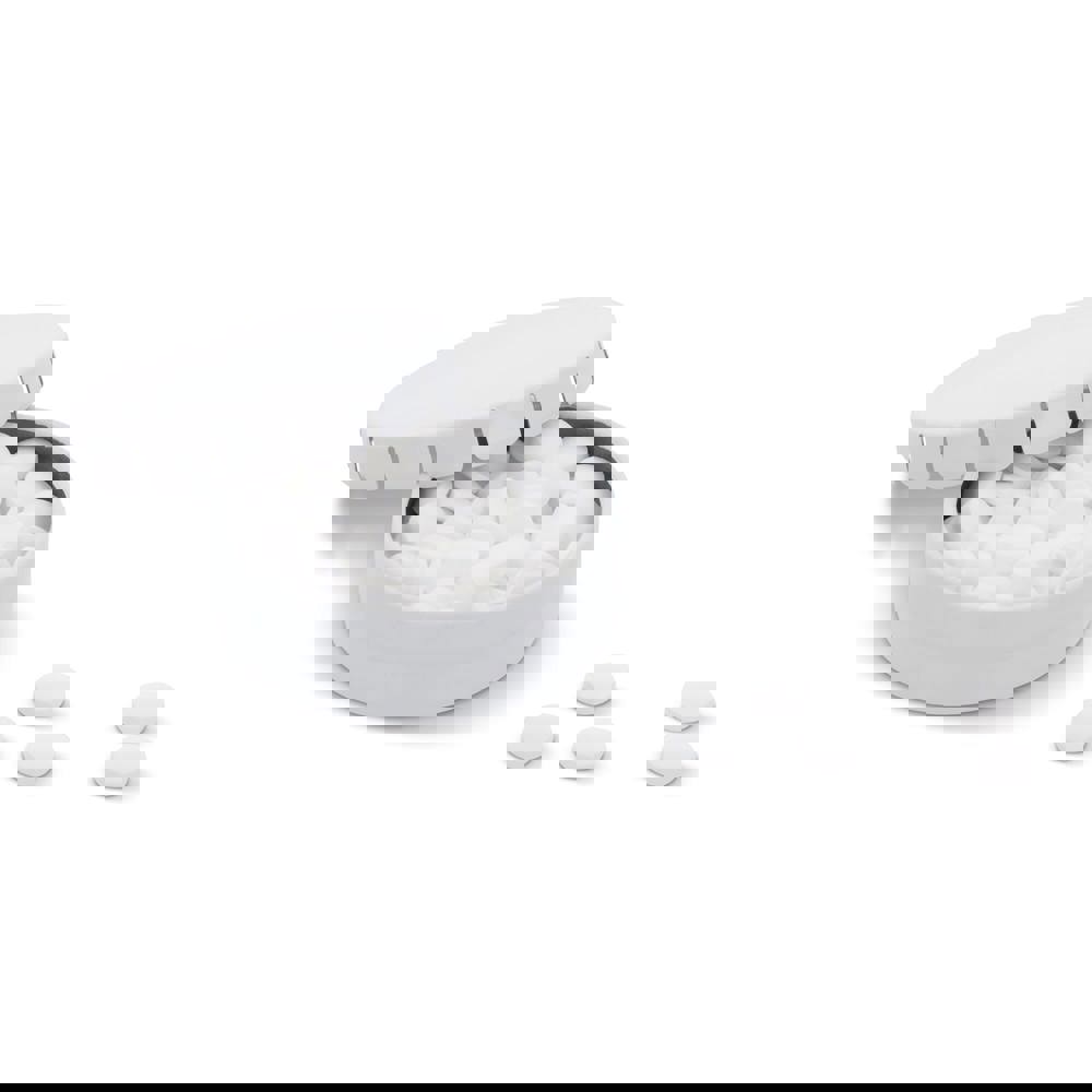 Geniet van de verfrissende pepermuntjes zonder suiker. Deze kleine lekkernijen zitten in een stijlvol blikje en zijn de perfecte opkikker. Druk er altijd en overal eentje in voor een mintsensatie die in je zak past. Versheid, gemak en smaak, allemaal in een compacte klik!