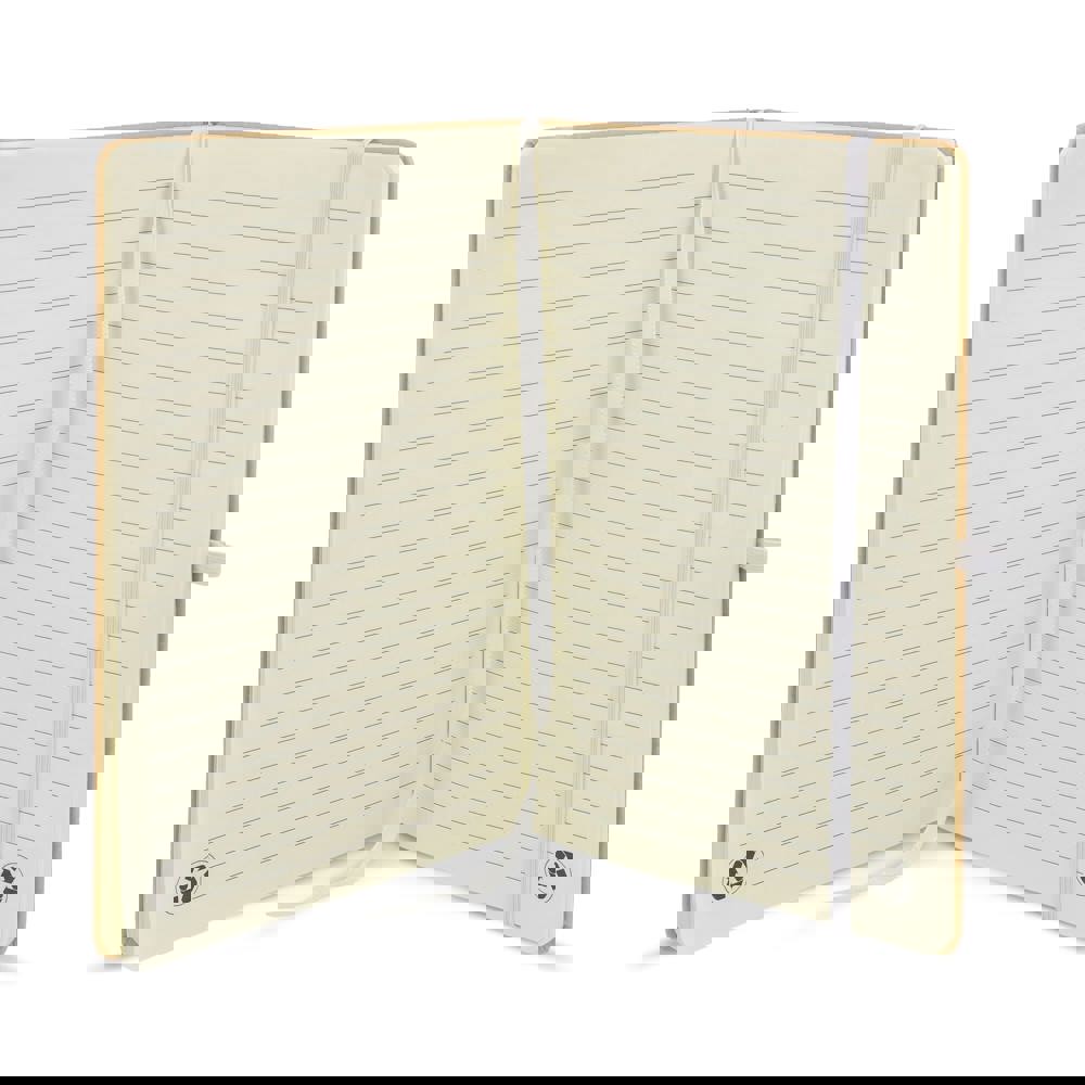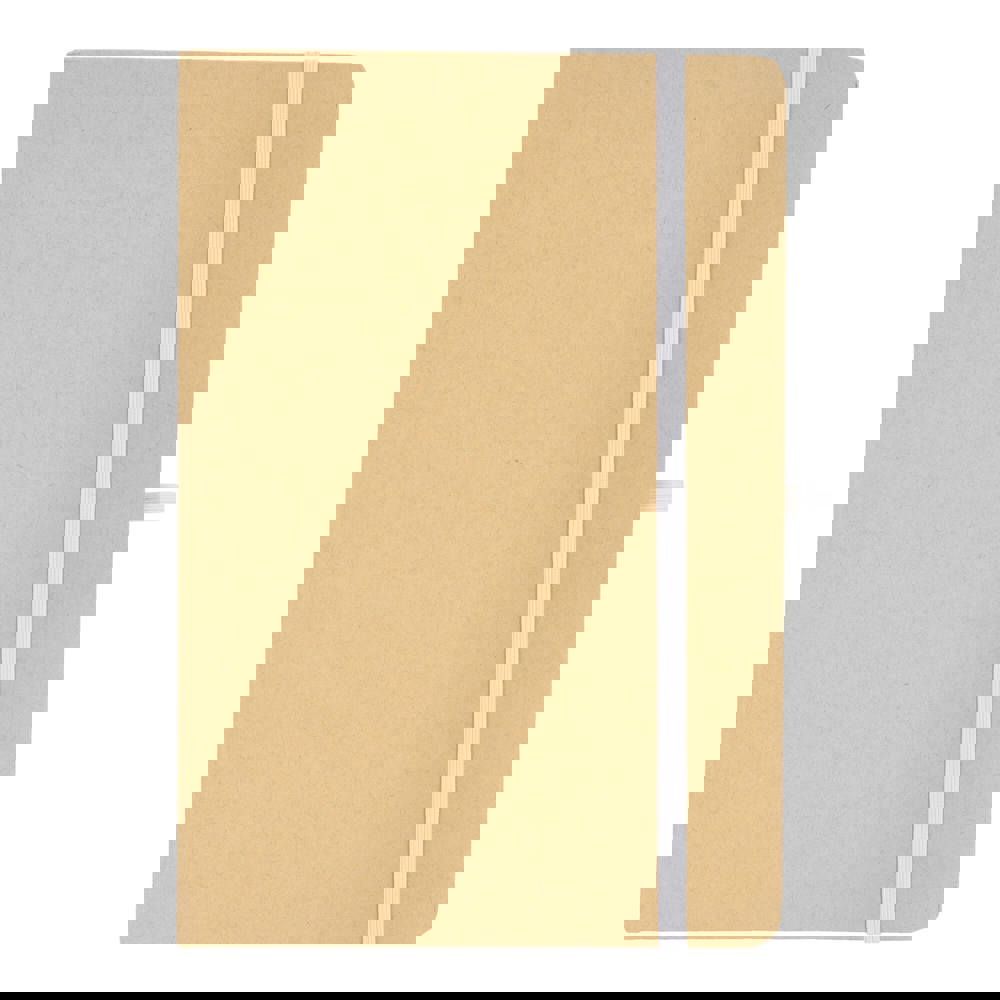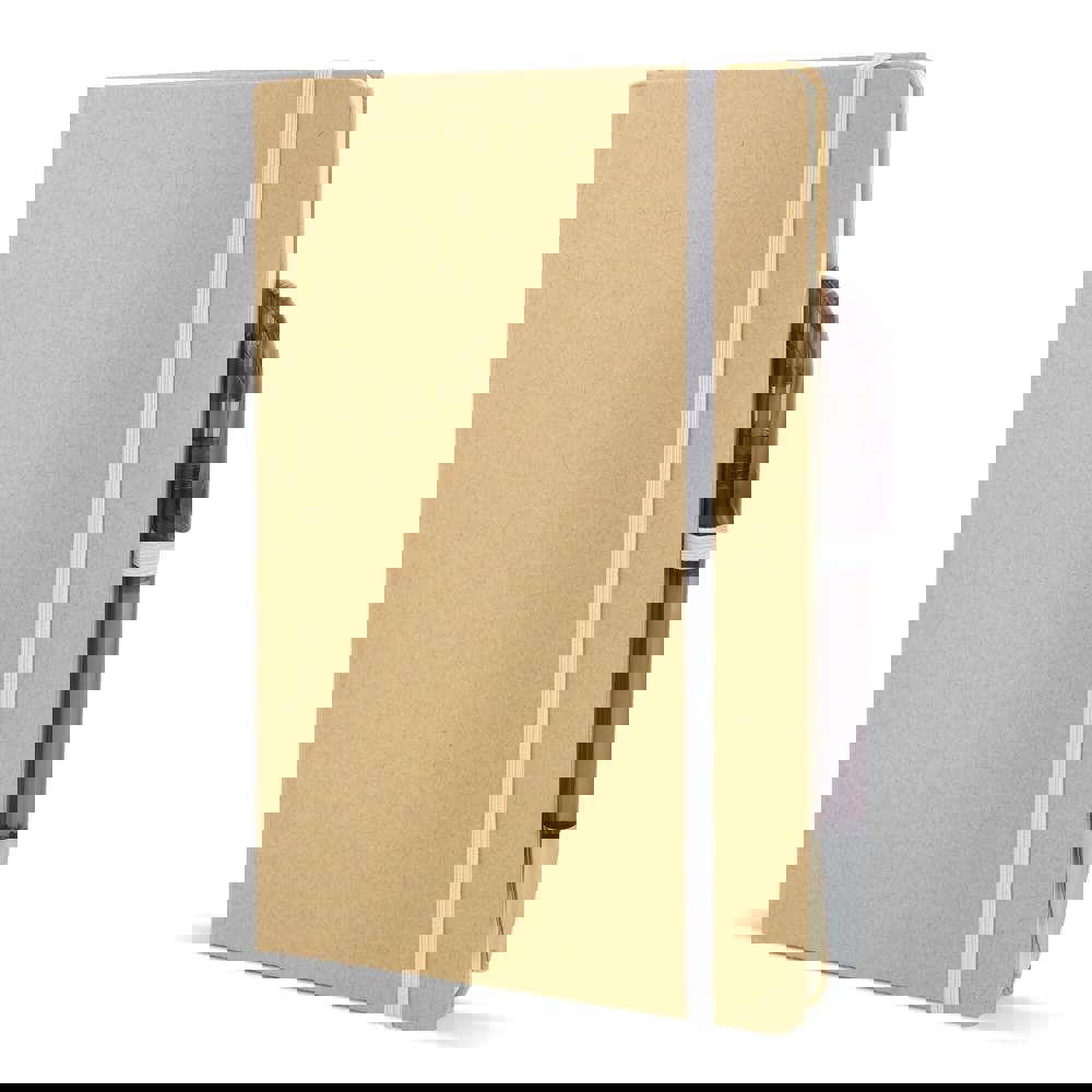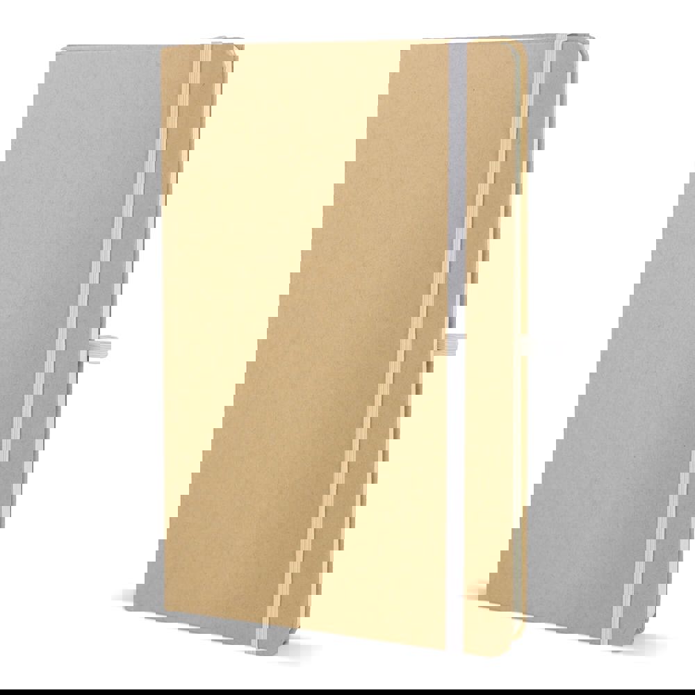 A5-notitieboek met kartonnen omslag, afgeronde hoeken, gekleurde elastische sluiting, leeslint en pennenlus. Bevat 80 gelinieerde crèmekleurige pagina’s van gerecycled papier. Een praktische en milieubewuste keuze voor dagelijks gebruik.