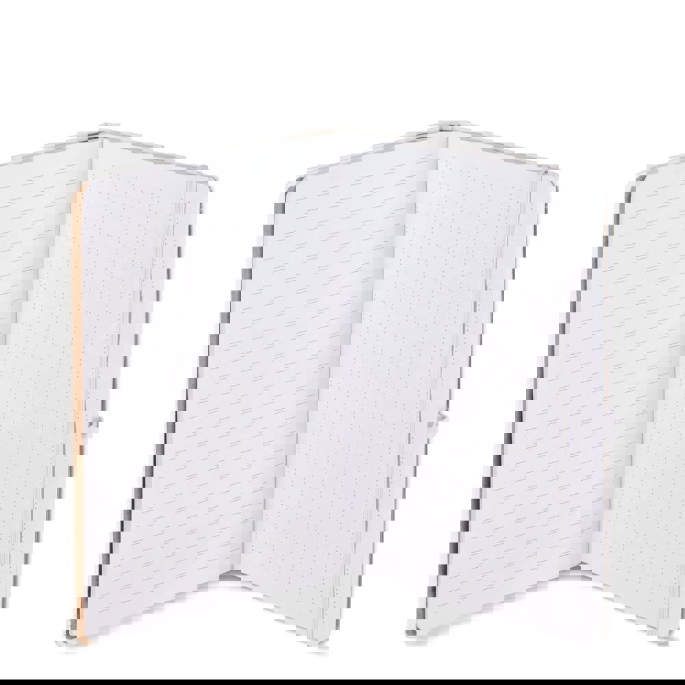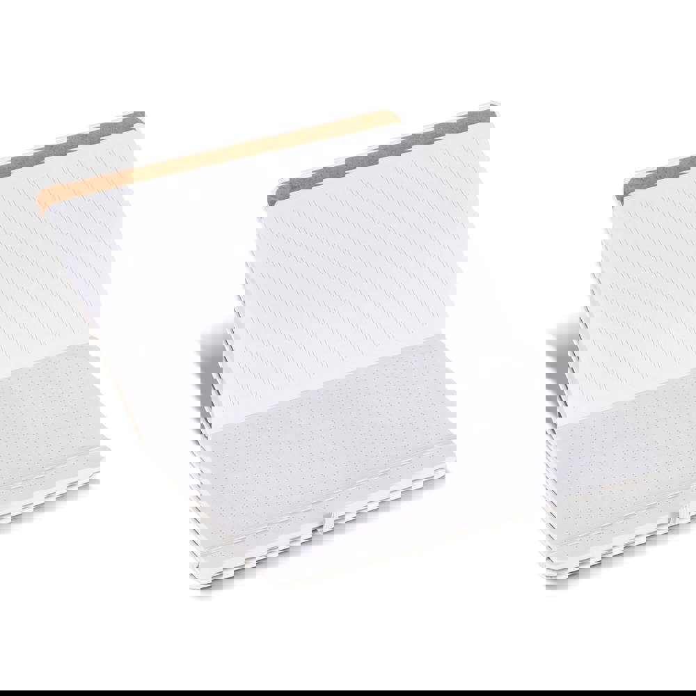 Veelzijdige notitieboek met 96 vellen: de voorkant van de pagina's is een puntraster, de achterkant gelinieerd. PU-omslag met elastische sluiting en penlus. Binnenvak voor visitekaartjes. Inclusief 25 grote gele en 25 kleine sticky notes in 5 kleuren (5 vellen per kleur). Pagina’s zijn gemaakt van 100% gerecycled papier.