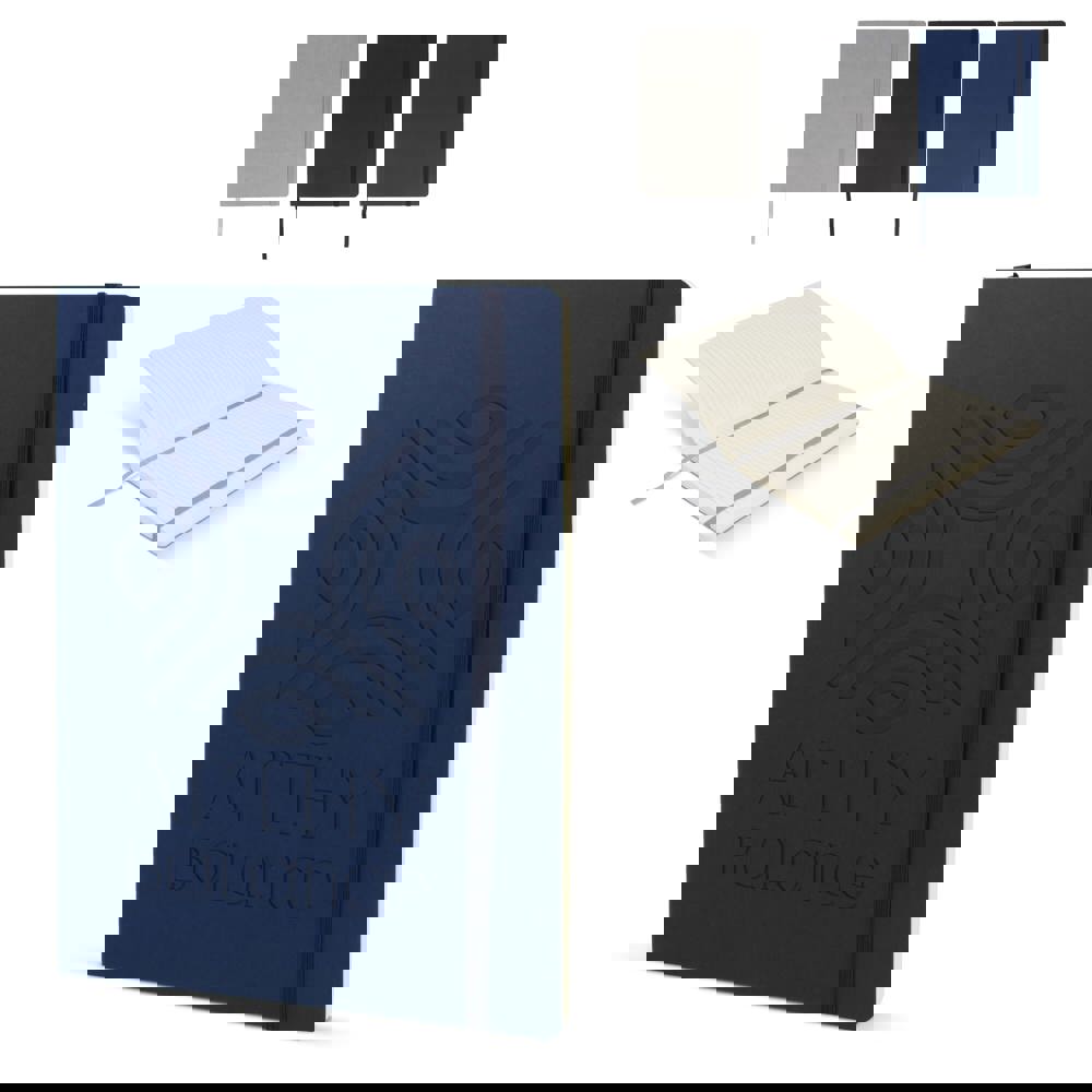Maak kennis met ons Maxi notitieboek met zachte omslag, een perfecte combinatie van elegantie en functionaliteit. Met de luxe crèmekleurige gelinieerde pagina's wordt schrijven een plezier. Het ingebouwde lint zorgt ervoor dat je nooit je plaats verliest, terwijl de elastische band je gedachten veilig vasthoudt.