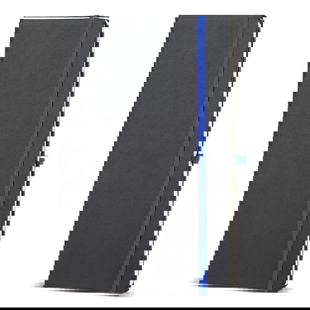 A5 hardcover notitieboek met een cover die geschikt is voor lasergravering. Bij graveren komt dezelfde kleur tevoorschijn als de penlus, het leeslint en de elastische sluiting. Bevat 96 crèmekleurige gelinieerde vellen van 70gsm papier. Strak en professioneel ontwerp voor dagelijks gebruik of als geschenk.