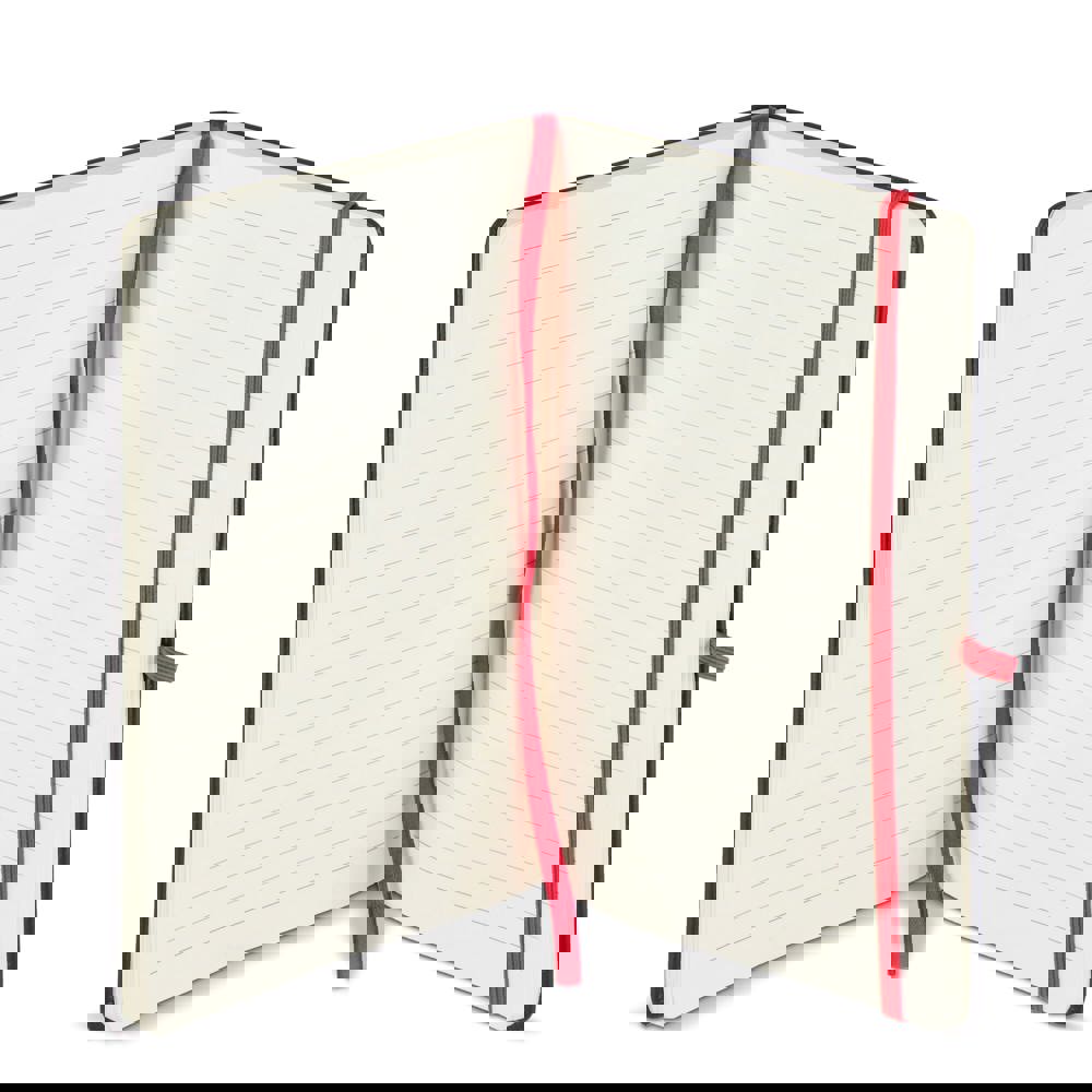 A5 hardcover notitieboek met een cover die geschikt is voor lasergravering. Bij graveren komt dezelfde kleur tevoorschijn als de penlus, het leeslint en de elastische sluiting. Bevat 96 crèmekleurige gelinieerde vellen van 70gsm papier. Strak en professioneel ontwerp voor dagelijks gebruik of als geschenk.