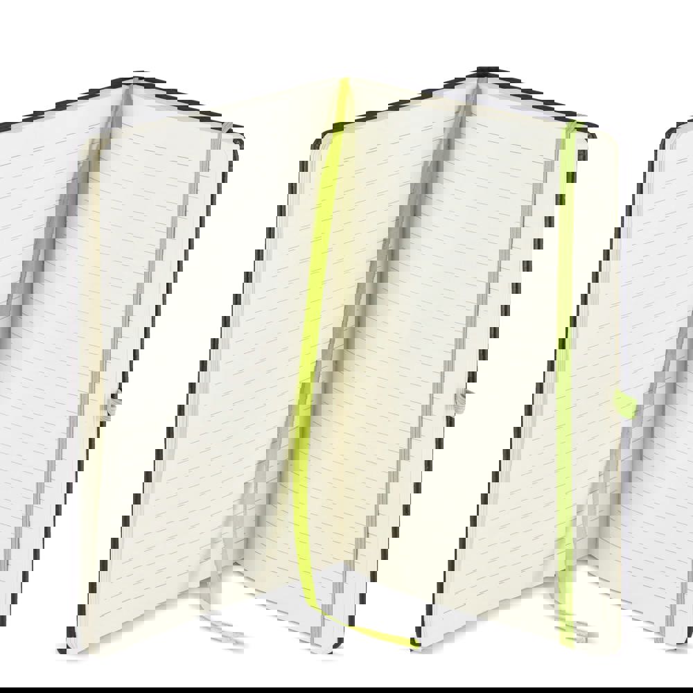 A5 hardcover notitieboek met een cover die geschikt is voor lasergravering. Bij graveren komt dezelfde kleur tevoorschijn als de penlus, het leeslint en de elastische sluiting. Bevat 96 crèmekleurige gelinieerde vellen van 70gsm papier. Strak en professioneel ontwerp voor dagelijks gebruik of als geschenk.