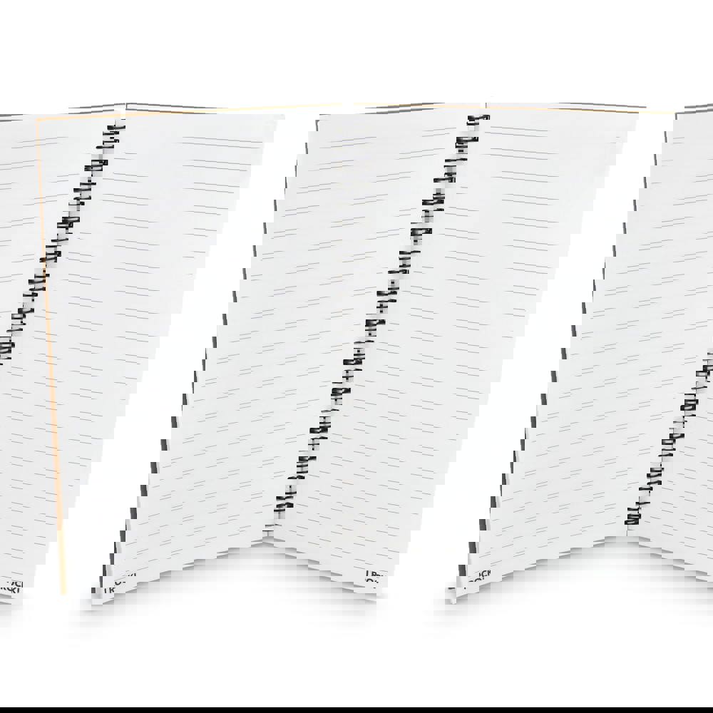 De pagina's van dit notitieboek zijn gemaakt van rotsen en ander gesteente. Het resultaat is een stevig glad papier dat opmerkelijk koel aanvoelt. De vellen zijn voorzien van een perforatie zodat ze eenvoudig uit het boekje gescheurd kunnen worden.