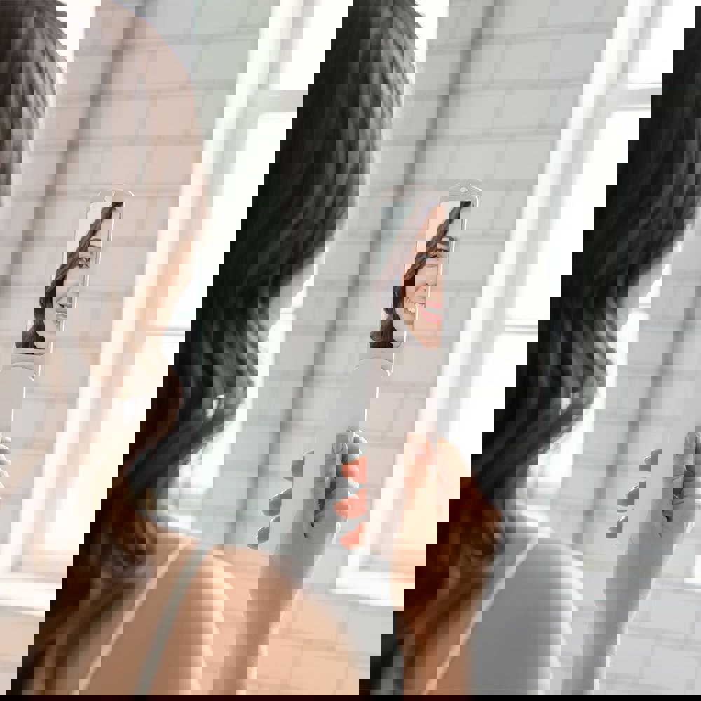 De Kaiya pluisborstel met spiegel combineert twee functies in één compact ontwerp. Gemaakt van duurzaam ABS, met aan de ene zijde een stoffen pluisoppervlak en aan de andere zijde een geïntegreerde spiegel. Slank en gemakkelijk mee te nemen, ideaal voor dagelijks gebruik, reizen en snelle touch-ups onderweg.