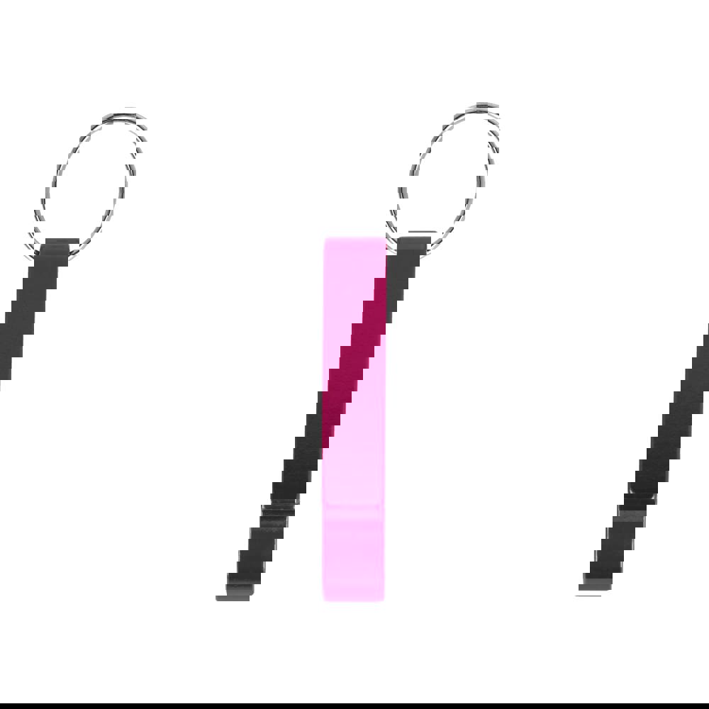 Aluminium sleutelhanger met gecombineerde fles- en blikopener. Lichtgewicht, duurzaam en ideaal voor dagelijks gebruik.
