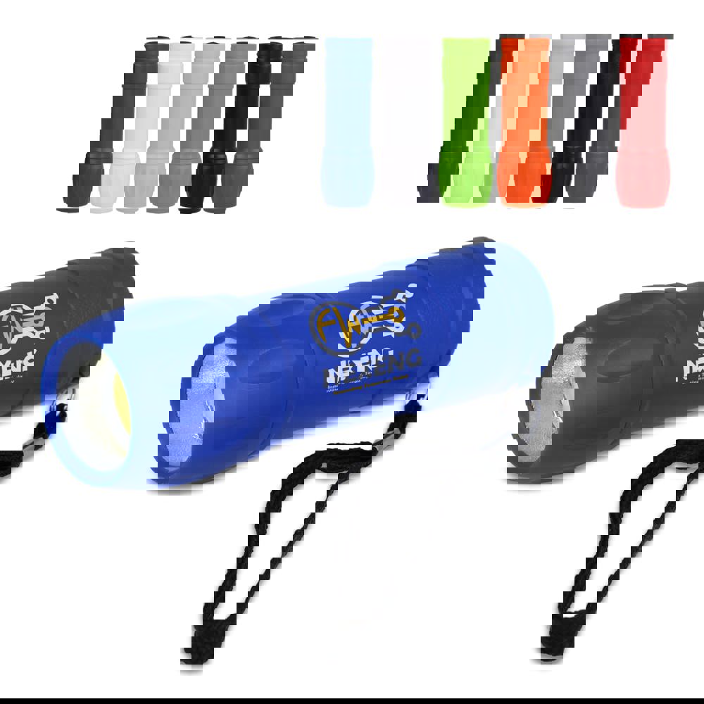 Compacte zaklamp gemaakt van gerecycled ABS met een 80lm COB-lamp. Met handriem om makkelijk mee te nemen en 3 AAA-batterijen voor direct gebruik. Ideaal voor alledaagse taken en buitenactiviteiten.
