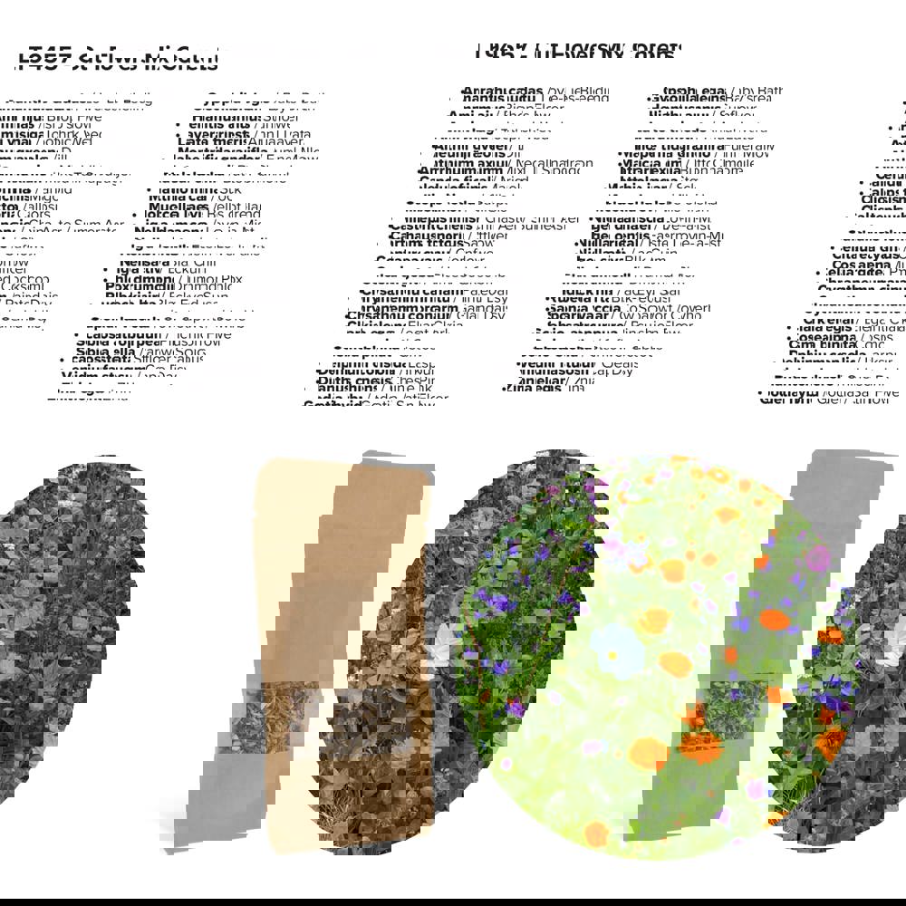 Kraft papieren zak met 4 gram snijbloemzaden geschikt voor 2 m² bloemen. Een echt duurzaam cadeau.