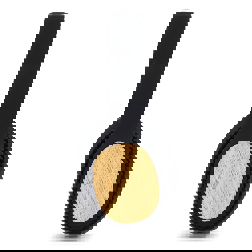 Mooie draadloze, en opvouwbare koptelefoon met een bamboe look. Door de oorkussens zit de koptelefoon prettig om je hoofd.