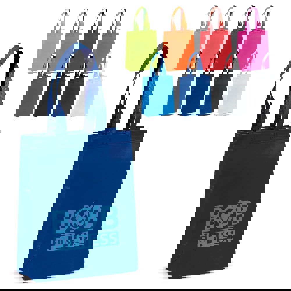 Non-woven tas in diverse kleuren. Mat gelamineerd. De hengsels zijn van non-woven materiaal. Ideaal voor bijvoorbeeld boodschappen of een dagje strand. Zakelijk ook uitstekend in te zetten voor congressen.
