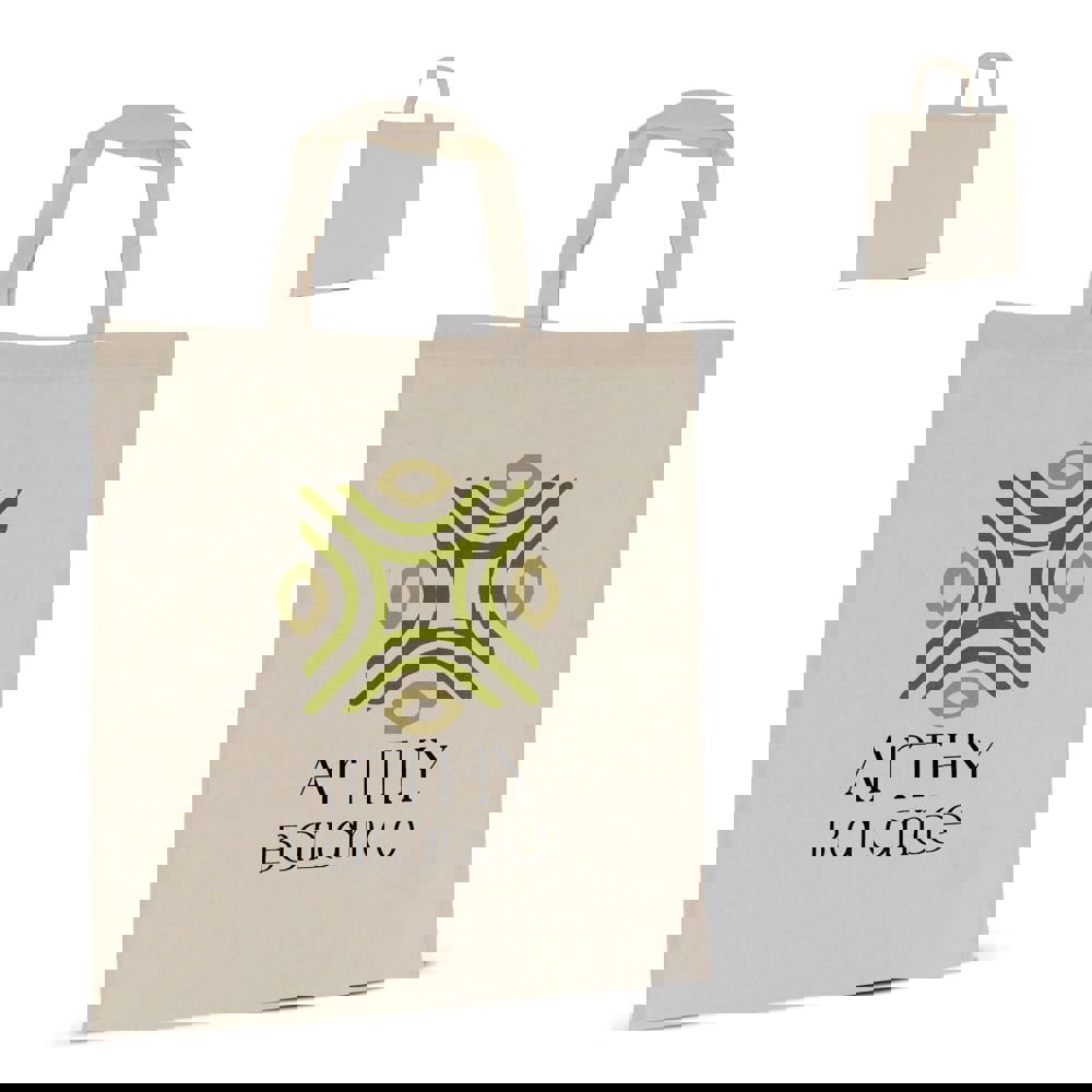 Klassieke katoenen schoudertas met kortere handvatten, ideaal voor promotionele activiteiten en conferenties. Deze tas is OEKO-TEX® gecertificeerd, wat het een duurzame keuze maakt.
