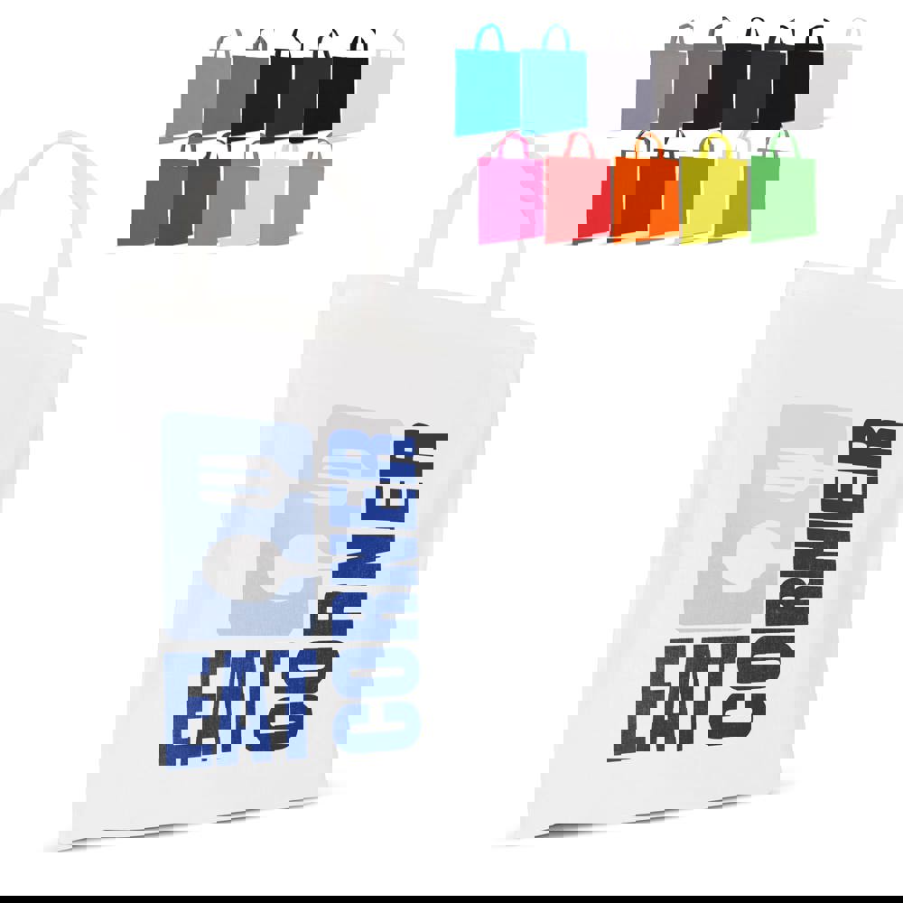 Klassieke katoenen schoudertas met kortere hengsels, ideaal voor promotionele activiteiten en conferenties. Deze tas is OEKO-TEX® gecertificeerd, waardoor het een duurzame keuze is.