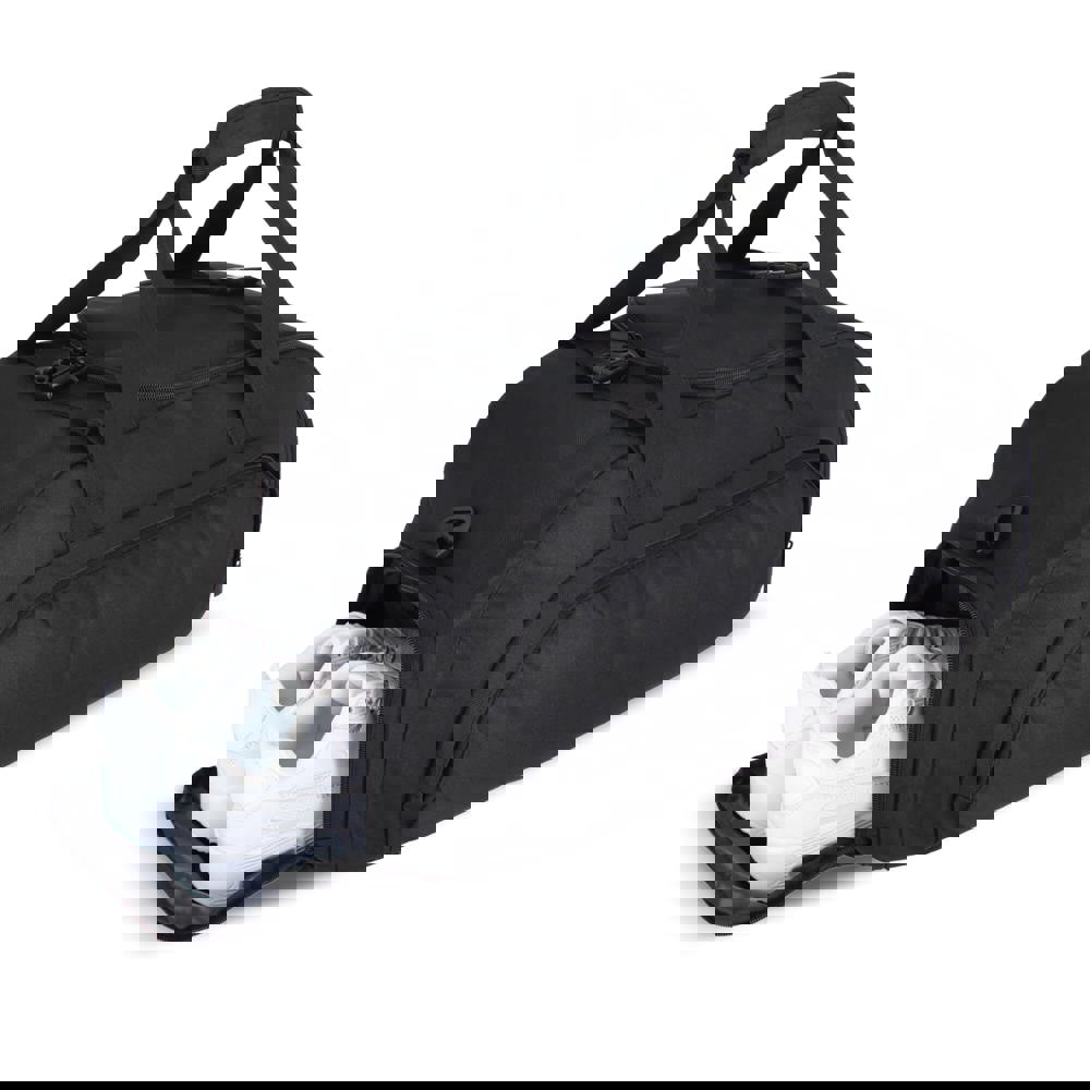 Deze handige zak heeft zowel hengsels om de tas in je hand te dragen of op je rug. Bovendien heeft deze zak een rits om de zak in 2 delen op te splitsen. Ideaal om bijvoorbeeld je propere kledij van de vuile te scheiden.