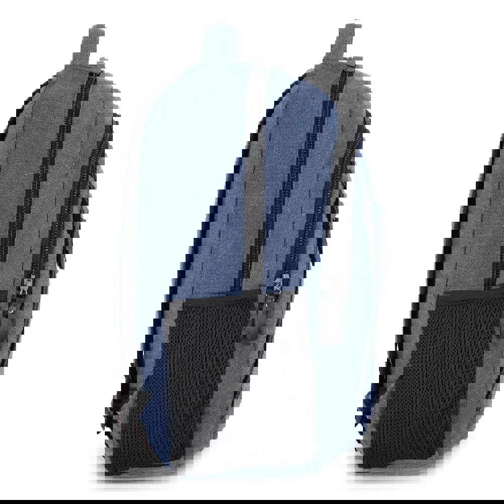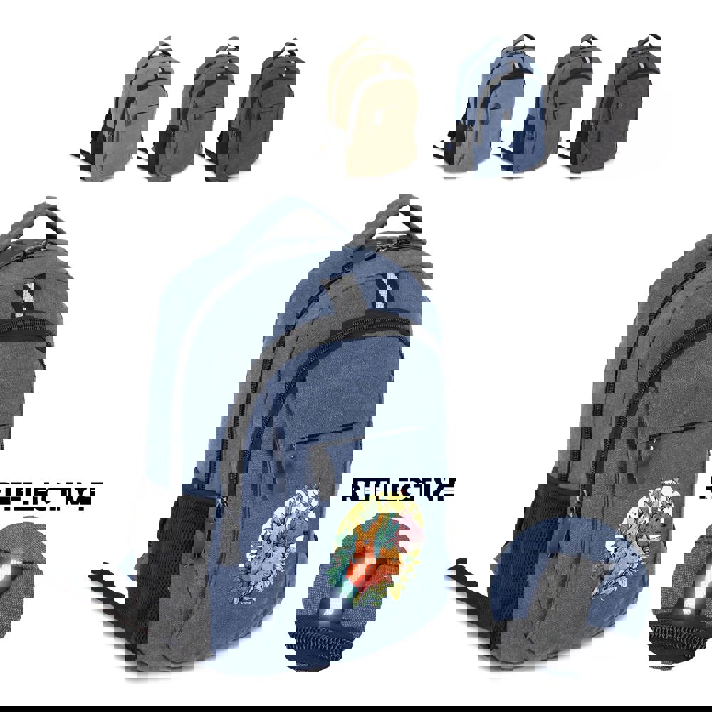 Stijlvolle rugzak van gerecycled katoenen canvas. Met 100% gerecyclede reflecterende banden, luxe ritsen en trekkers en 100% gerecyclede polyester voering. Met gewatteerde rug, handgreep, verstelbare schouderbanden, 2 zijvakken voor flessen of een paraplu, voorvak en laptopvak aan de binnenkant.