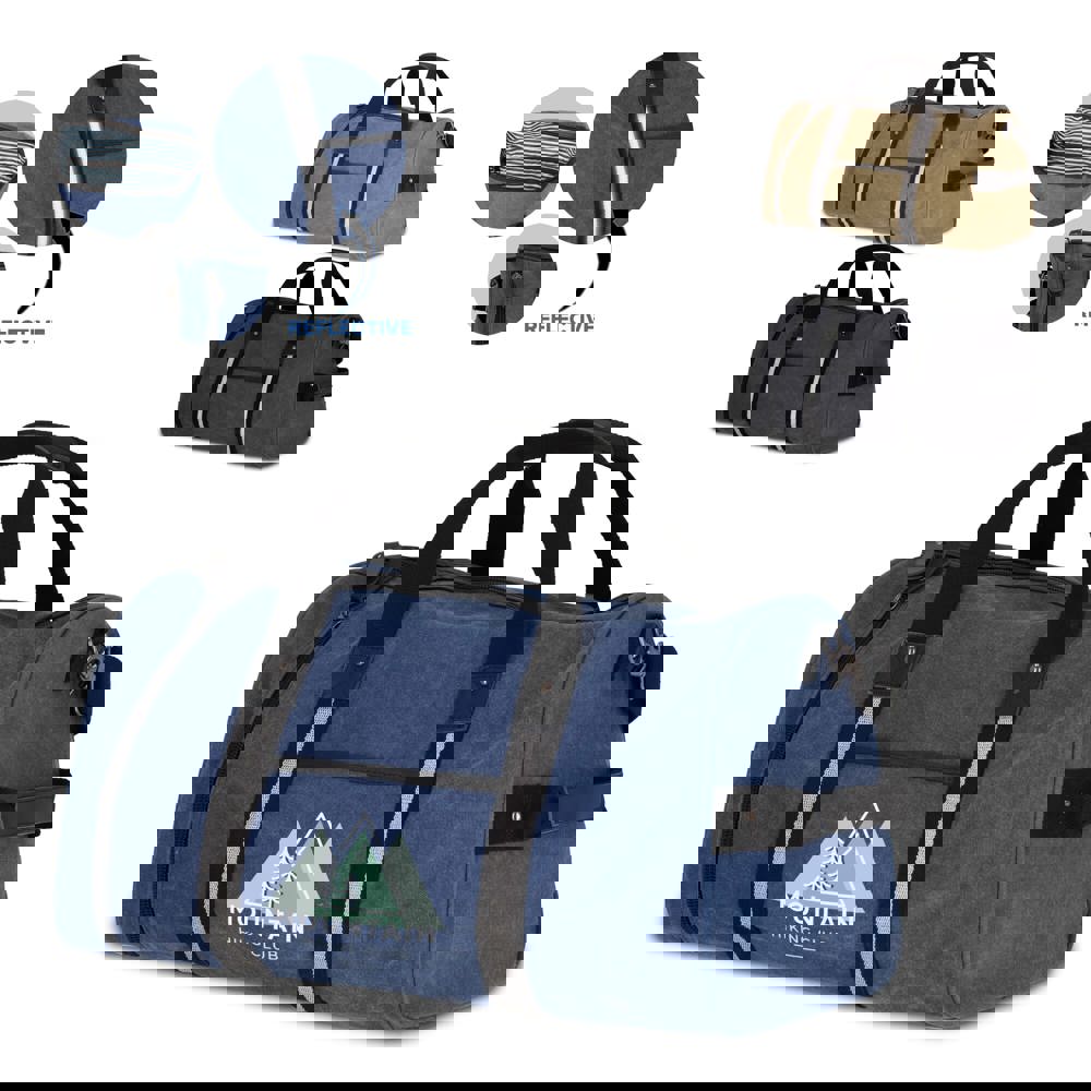 Stijlvolle plunjezak van gerecycled katoenen canvas. Met 100% gerecyclede reflecterende banden, luxe ritsen en trekkers en 100% gerecyclede polyester voering. Met handgreep aan de zijkant, verstelbare afneembare schouderriem, 1 zijvak, 2 voorvakken en 3 binnenvakken, waarvan één met ritssluiting.