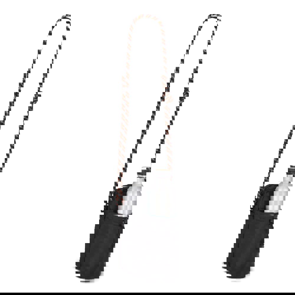 Dit veelzijdige tasje is perfect om je waterfles in mee te nemen, samen met alledaagse benodigdheden zoals je telefoon, sleutels en portemonnee. Het voorvak is geschikt voor de meeste 500 ml flesjes, zodat je ze altijd binnen handbereik hebt. Met het meegeleverde bevestigingsplaatje voor achter je telefoonhoesje verander je hem moeiteloos in een handig telefoonkoord.