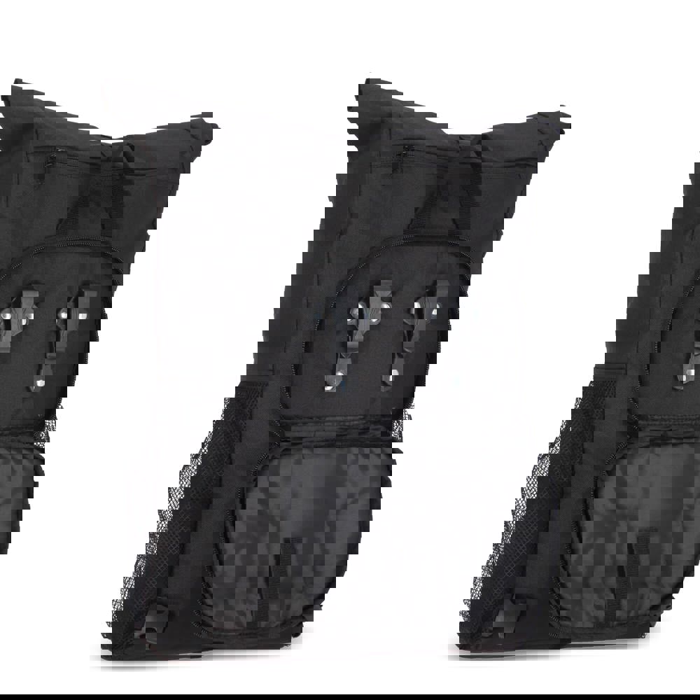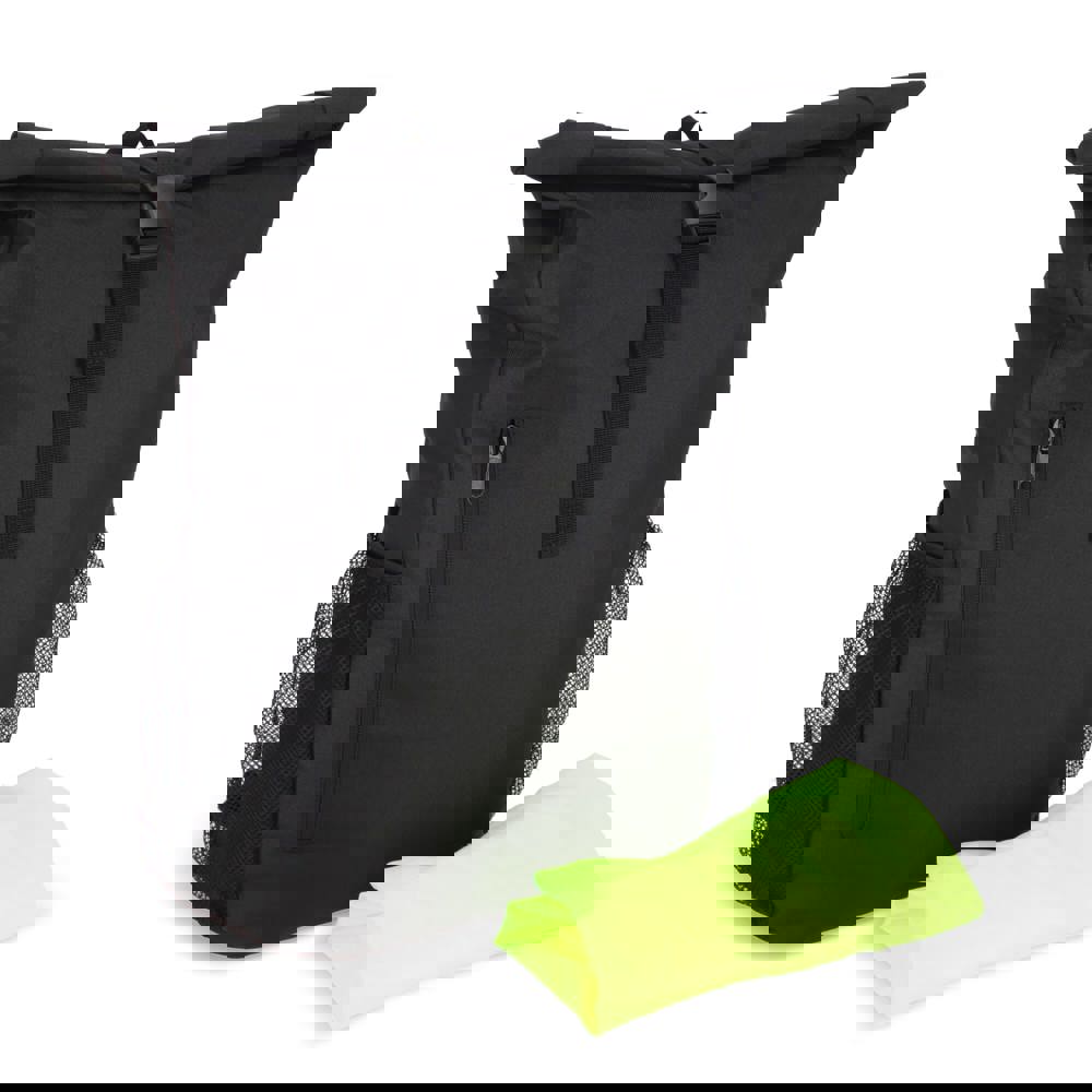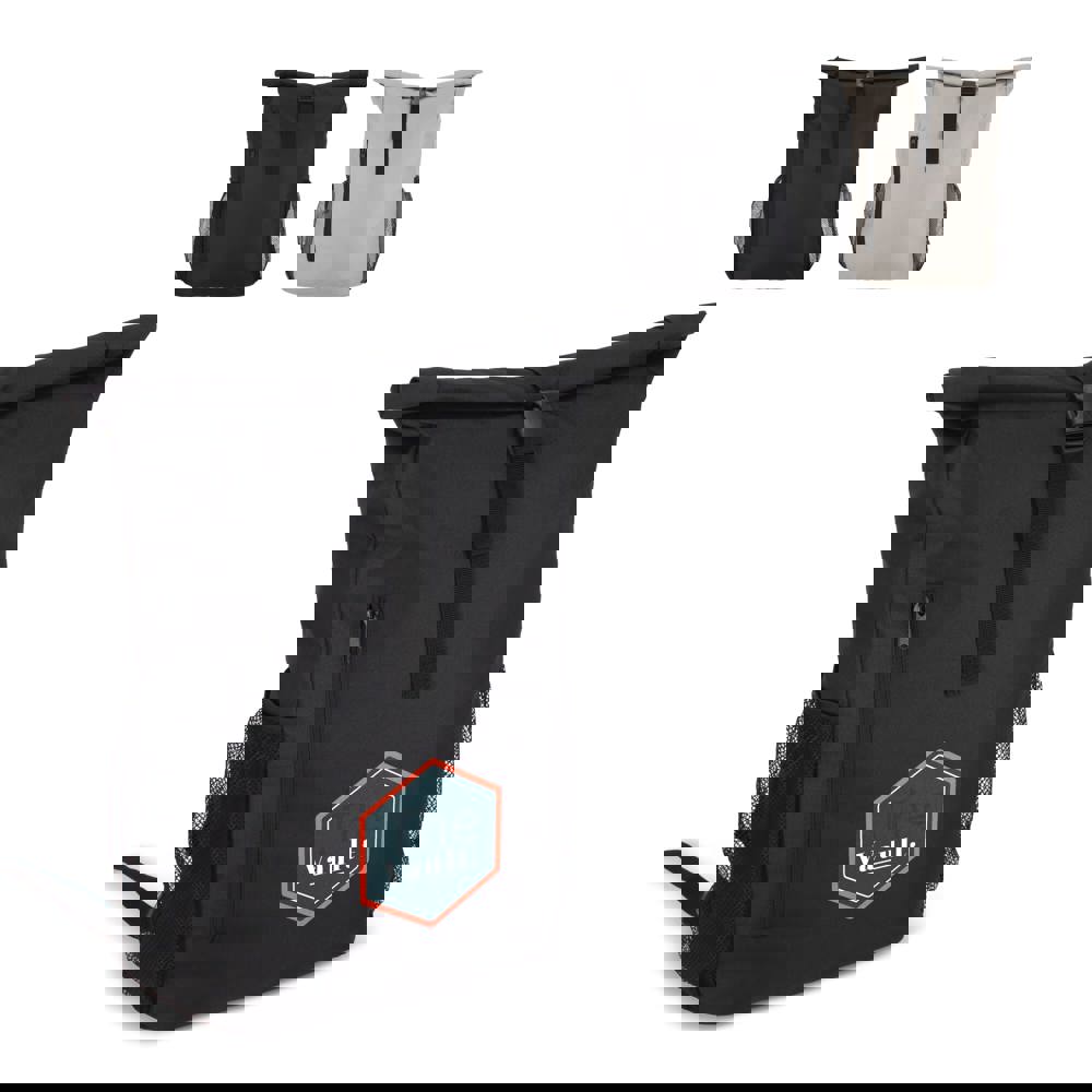 Deze handige fietstas, in het trendy roll-top ontwerp, is gemaakt van gerecycled PET. De tas heeft een boven- en voorvak met ritssluiting, een handvat aan de bovenkant, verstelbare, gevoerde, afneembare schouderbanden en dubbele clips om de tas tijdens het fietsen aan je fiets te klemmen. De twee zijvakken zijn ideaal voor waterflessen of paraplu's.