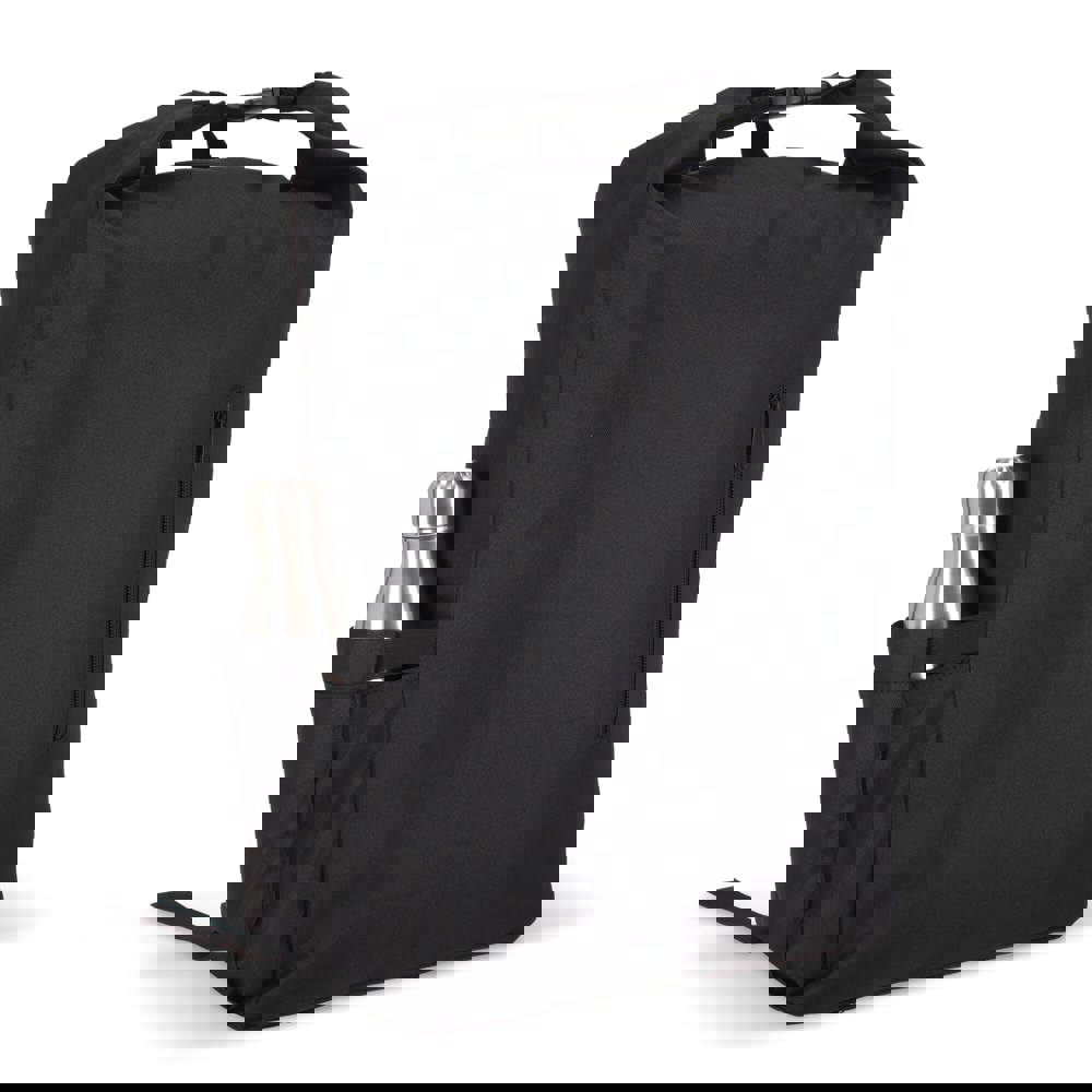 Deze handige rugzak is gemaakt van gerecycled PET. Hij heeft verstelbare, gewatteerde schouderbanden, een handvat aan de bovenkant en een voorvak met ritssluiting, ideaal voor kleinere accessoires. Het zijvak is ideaal voor een waterfles of paraplu.