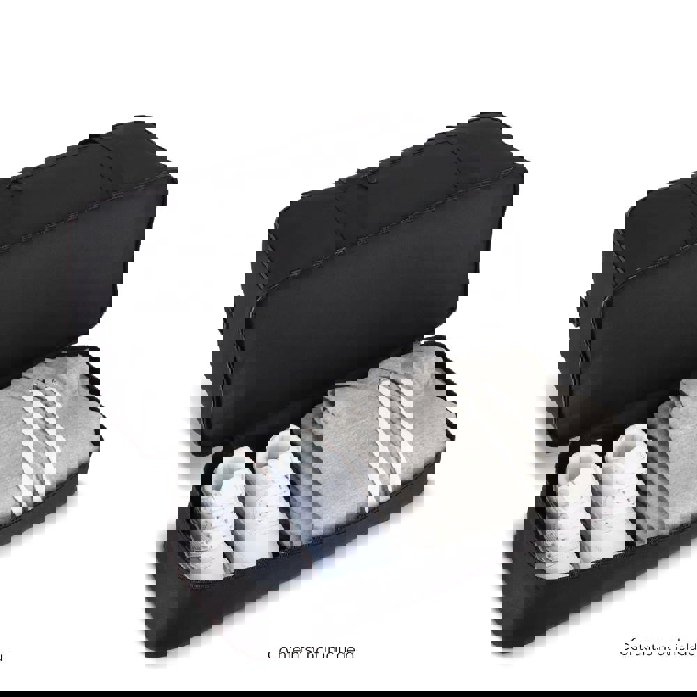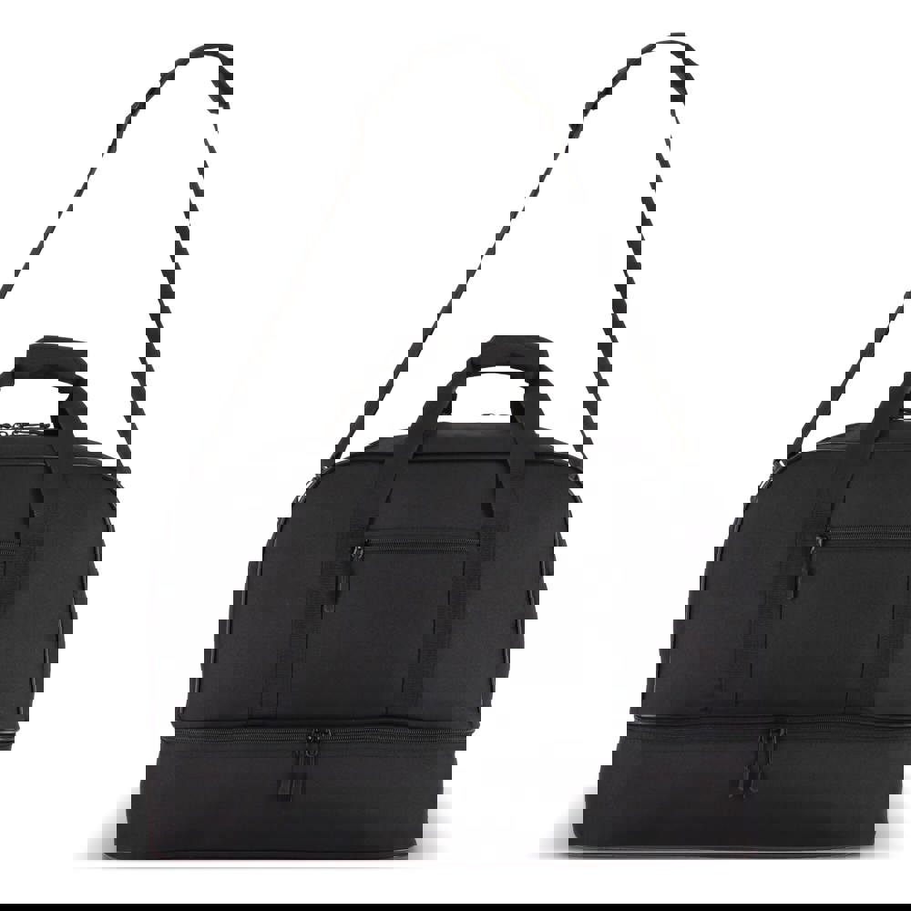 Reis- of sporttas met twee vakken, gemaakt van 600D gerecycled polyester. Voorzien van draaghandvatten, een afneembare en verstelbare schouderriem, een voorvak met ritssluiting en een bodemplaat voor stabiliteit. Twee vakken houden natte of vuile kleding en handdoeken gescheiden van andere spullen, of schoenen apart van kleding tijdens het reizen.