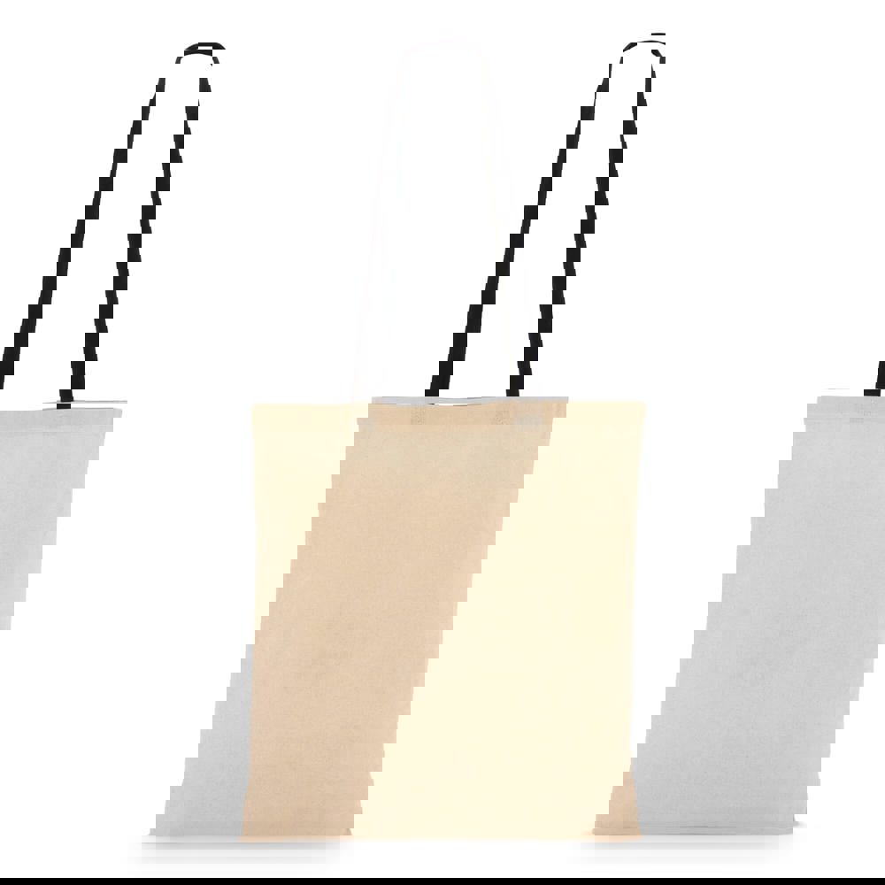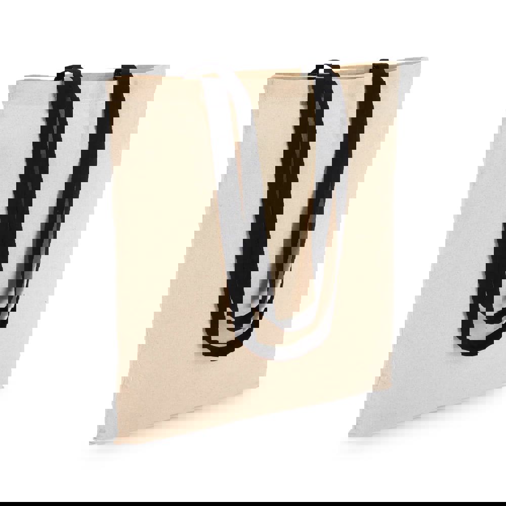 Klassieke katoenen tote van 140gsm met een naturel taslichaam en contrasterende gekleurde handvatten. Lange handvatten voor comfortabel dragen over de schouder. Oeko-Tex® gecertificeerd. Ideaal voor events, retail of dagelijks gebruik.