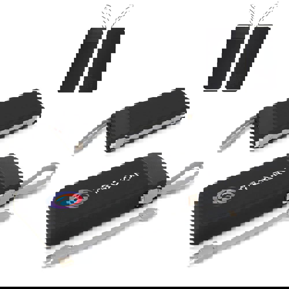 Onze 10K mAh powerbank Ziara gemaakt van R-ABS heeft een 3 in 1 geïntegreerde kabel die compatibel is met alle gemiddelde smartphones op de markt en direct klaar is voor gebruik. Als hij volledig is opgeladen, gaat de batterij tot ongeveer 31 uur mee.