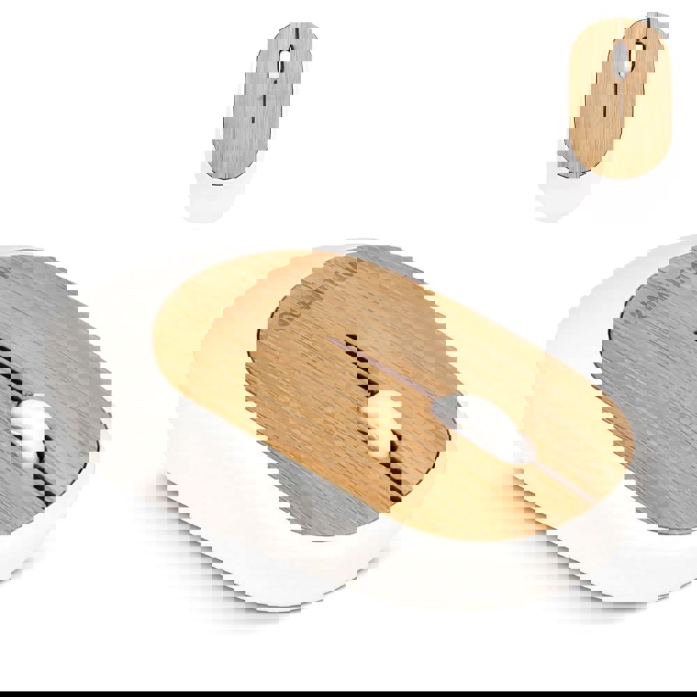 Maak kennis met onze muis vervaardigd uit bamboe en gerecycled ABS. Een mix van natuurlijke textuur en moderne functionaliteit binnen handbereik, met een ergonomisch design dat je werkplek naar een hoger niveau tilt.