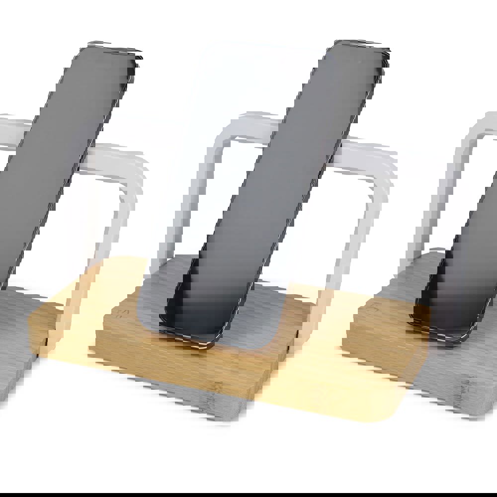 Deze stijlvolle bamboe draadloze oplader combineert een natuurlijke uitstraling met optimale functionaliteit. Met 15W output laadt hij je telefoon snel draadloos op. Het gentegreerde LED-lampje is dimbaar en zorgt voor sfeervolle verlichting op je nachtkastje. Inclusief USB-C kabel.