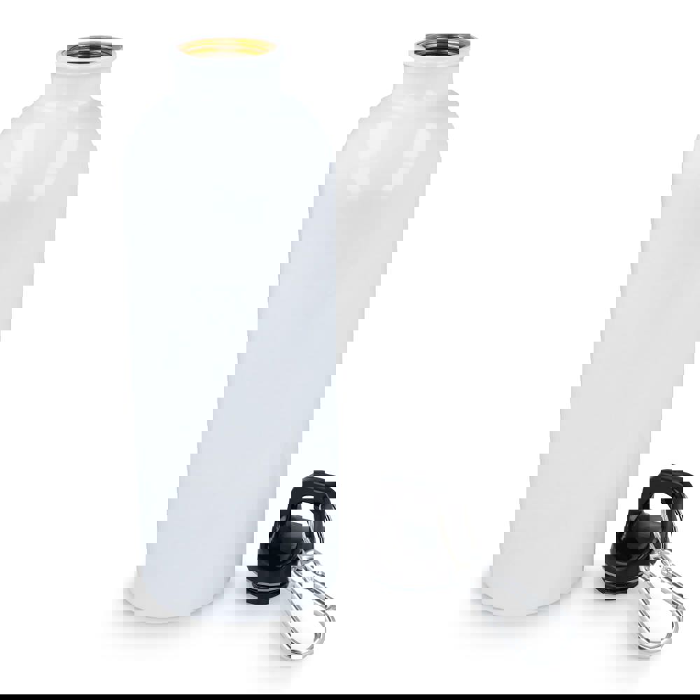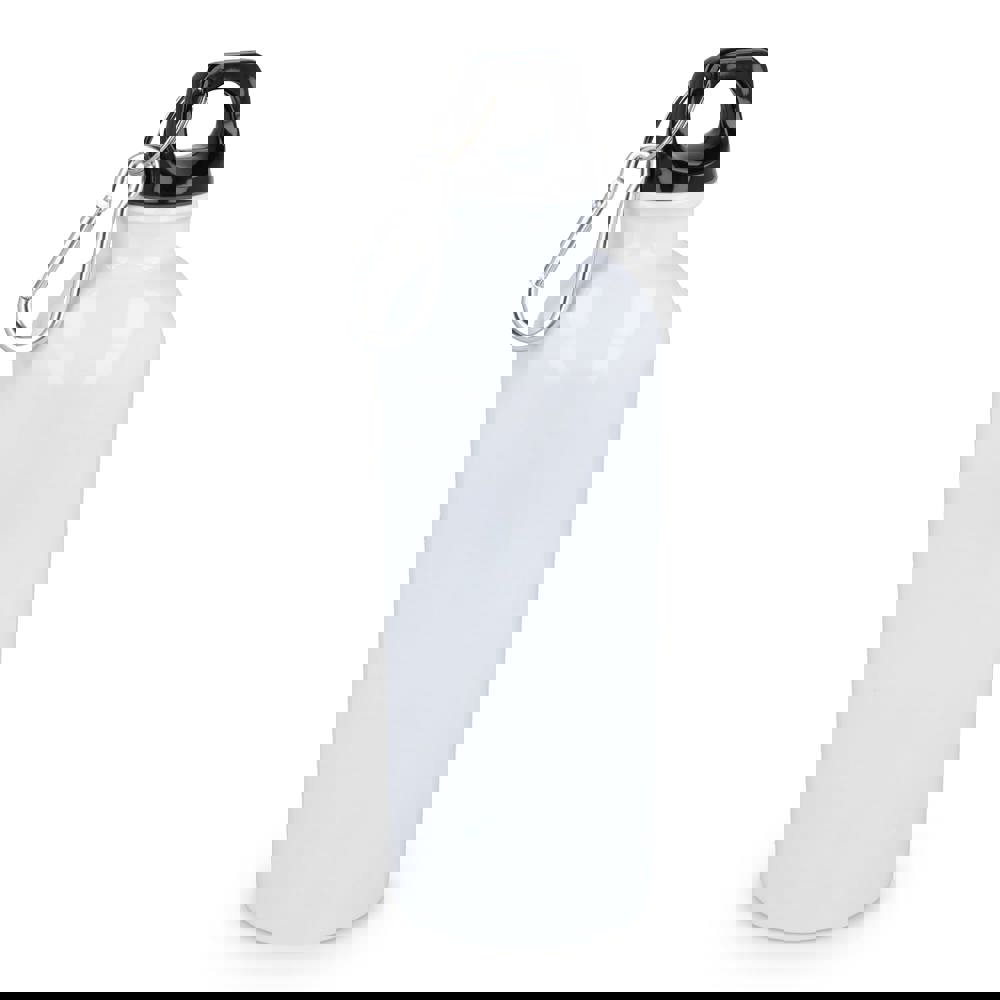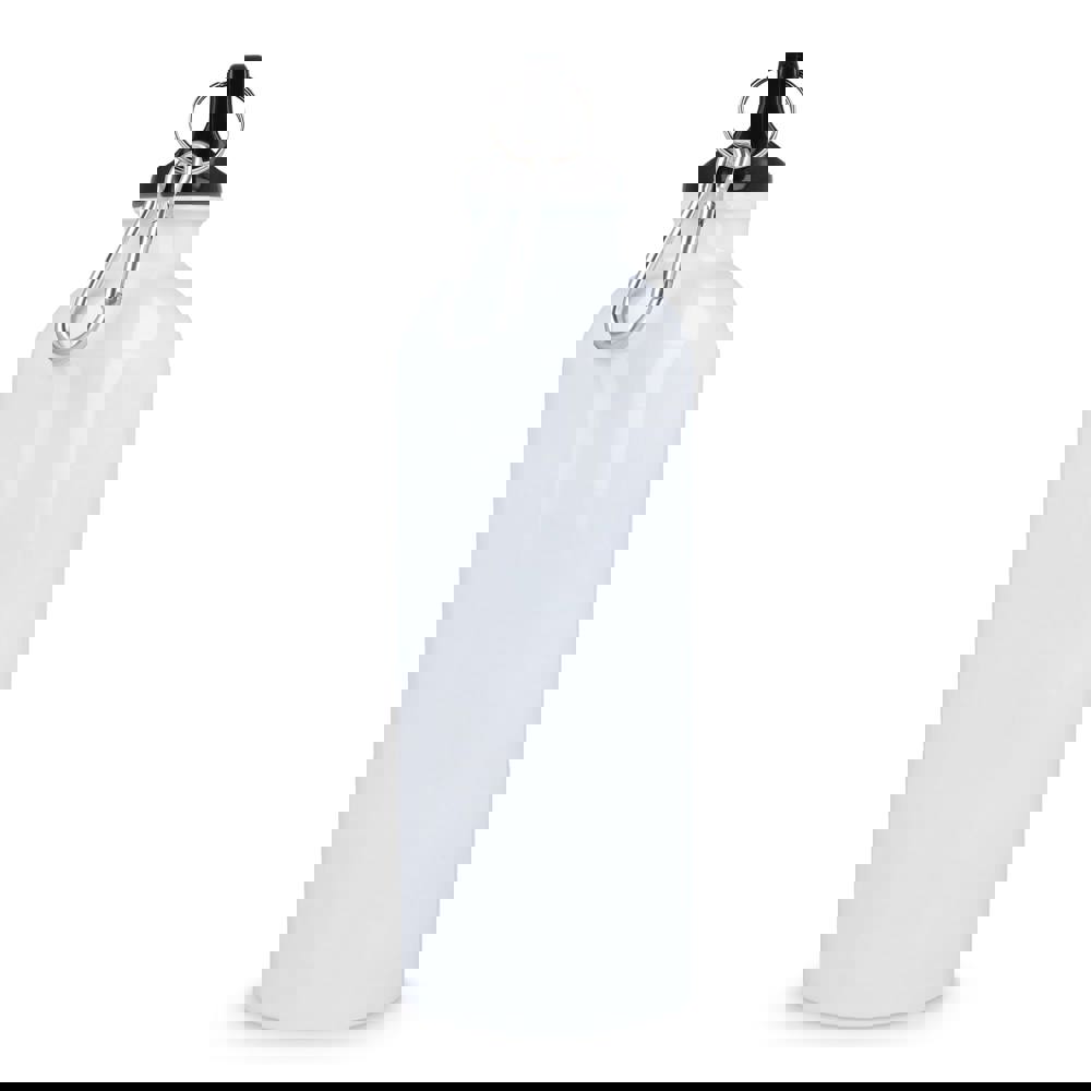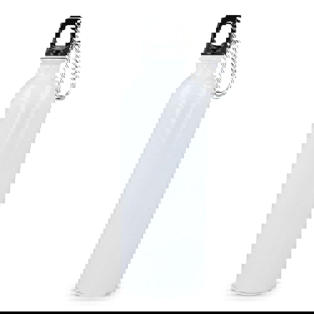 Een duurzame enkelwandige fles van 500 ml, gemaakt van gerecycled roestvrij staal, met een karabijnhaak voor eenvoudige bevestiging aan tassen of andere spullen. De fles is lichtgewicht, herbruikbaar en ideaal om onderweg gehydrateerd te blijven. Verkrijgbaar in verschillende glanzende en metallic kleuren. Per stuk verpakt in een giftbox.