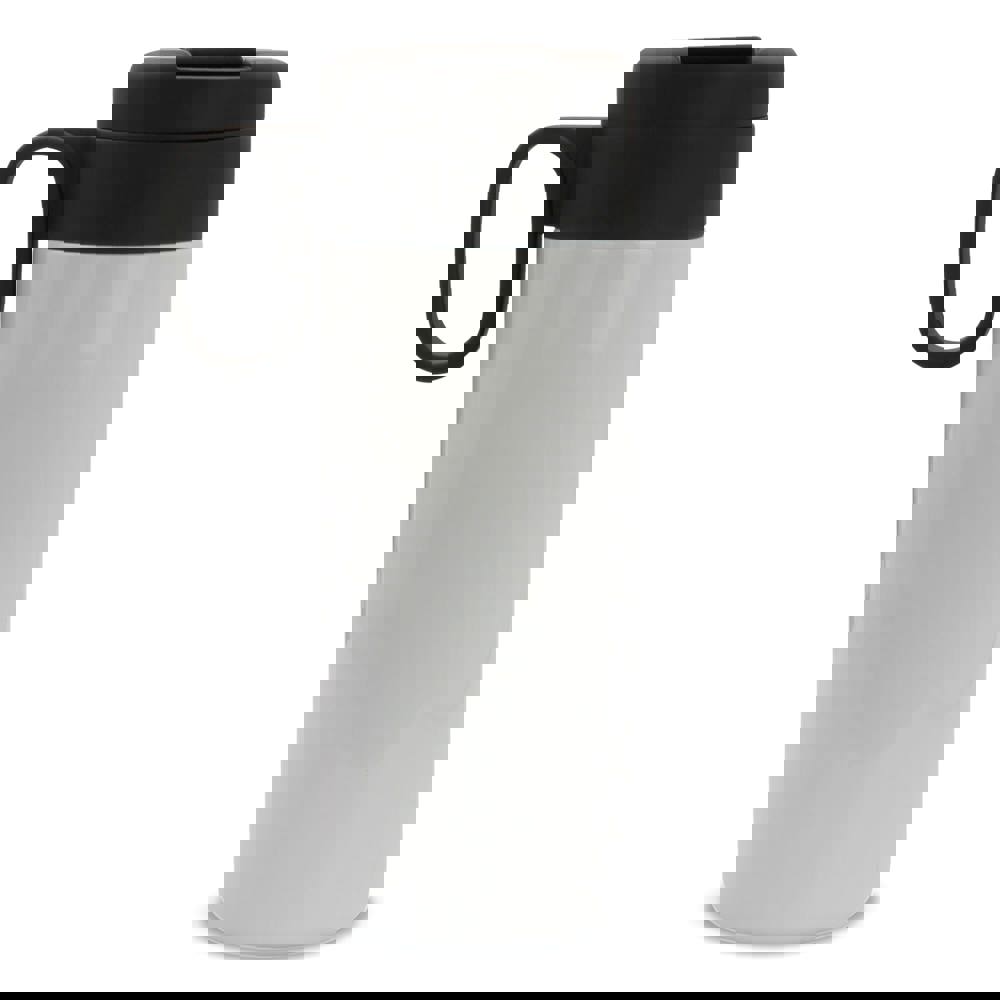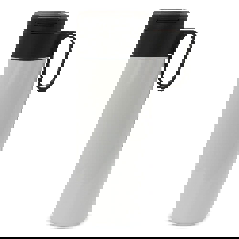Dubbelwandig vacuüm geïsoleerde beker uit de Toppoint design 'Flow' serie. De mok met klapdeksel is 100% lekvrij en eenvoudig mee te nemen. Zowel de binnenwand als de buitenwand van de mok bestaan uit RVS en is van zeer hoogwaardige kwaliteit. Daardoor blijft het drinken langer op de gewenste temperatuur. Het handvat maakt het eenvoudiger om te dragen. Dranken blijven tenminste 12 uur warm of 24 uur koud. Wordt geleverd in een geschenkverpakking.