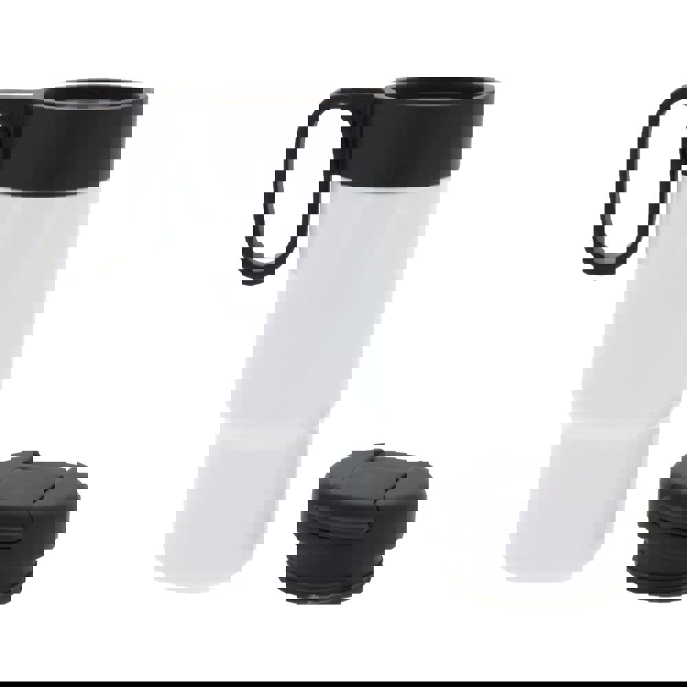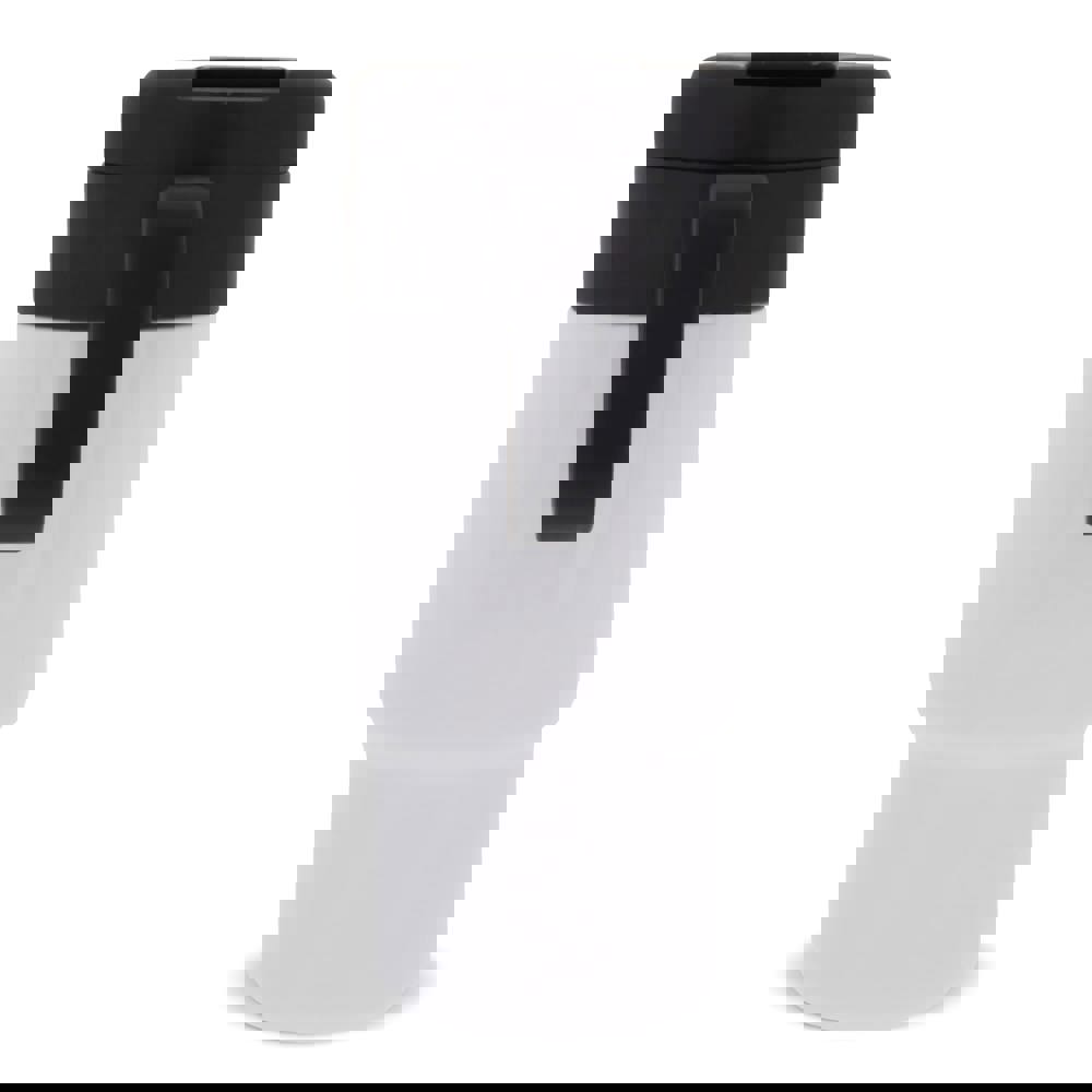Dubbelwandig vacuüm geïsoleerde beker uit de Toppoint design 'Flow' serie. De mok met klapdeksel is 100% lekvrij en eenvoudig mee te nemen. Zowel de binnenwand als de buitenwand van de mok bestaan uit RVS en is van zeer hoogwaardige kwaliteit. Daardoor blijft het drinken langer op de gewenste temperatuur. Het handvat maakt het eenvoudiger om de fles te dragen. Dranken blijven tenminste 12 uur warm of 24 uur koud. Wordt geleverd in een geschenkverpakking.