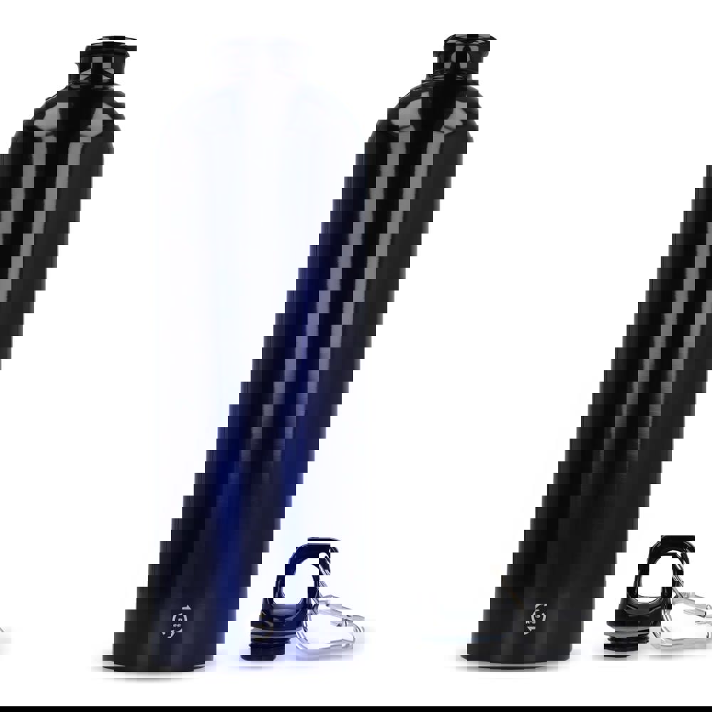 Een duurzame enkelwandige fles van gerecycled roestvrij staal, met een karabijnhaak voor eenvoudige bevestiging aan tassen of uitrusting. De fles is lichtgewicht, herbruikbaar en ideaal om onderweg gehydrateerd te blijven. Verkrijgbaar in verschillende glanzende en metallic kleuren. Wordt geleverd in een geschenkverpakking.