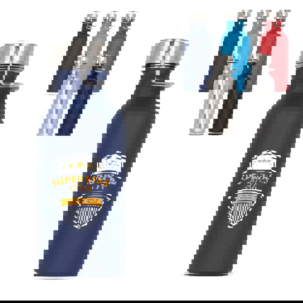 Roestvrijstalen enkelwandige waterfles. De 100% lekvrije fles wordt geleverd in mooie geschenkverpakking. De fles bevat een poedercoating aan de buitenkant voor een hoogwaardiger oppervlak. Geschikt voor koude niet-koolzuurhoudende dranken.