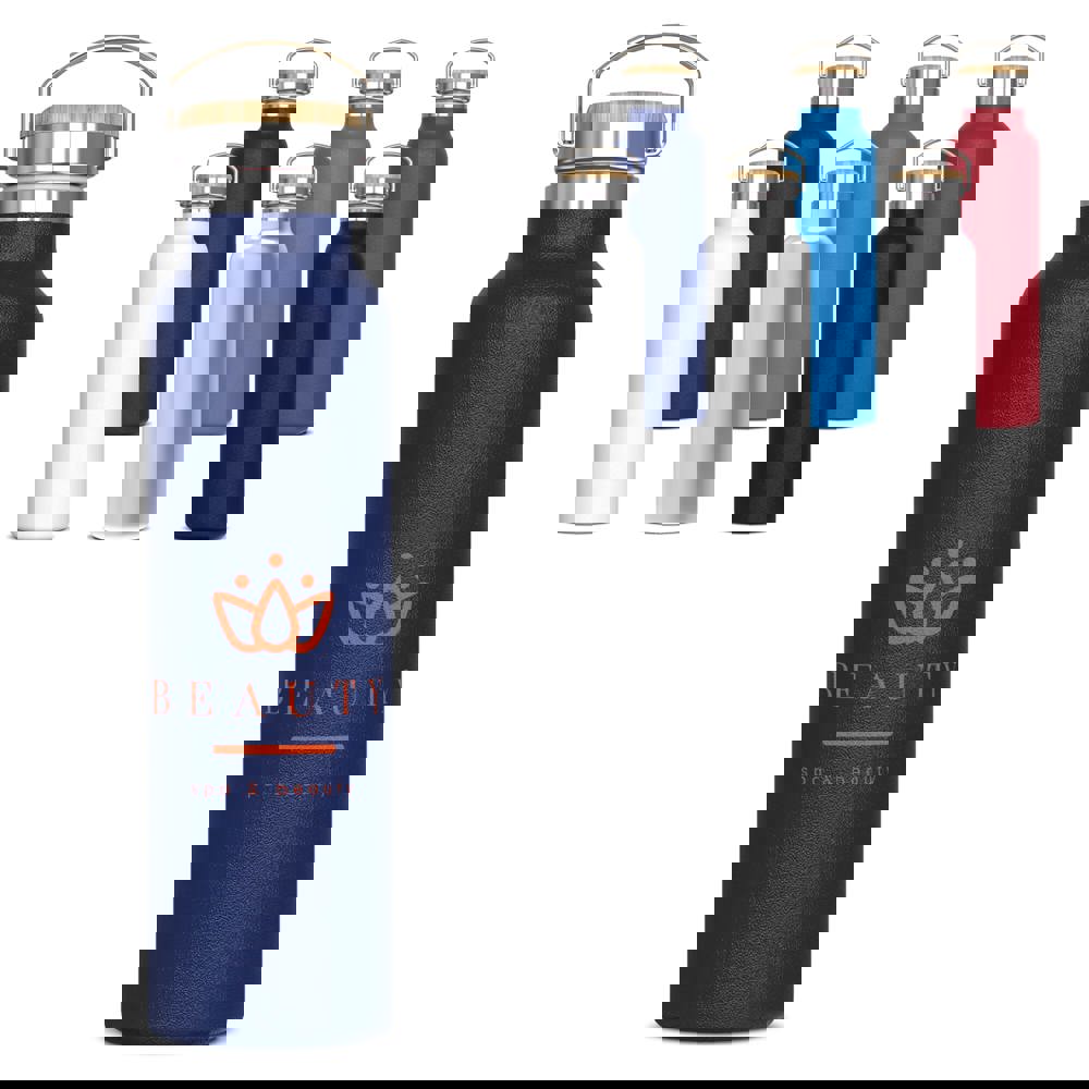 Dubbelwandig vacuüm geïsoleerde thermofles. De 100% lekvrije fles wordt geleverd in een mooie geschenkverpakking. Door het vacuüm tussen de wanden blijven dranken langer op temperatuur. Dranken blijven tenminste 12 uur warm of 24 uur koud. De fles bevat een poedercoating aan de buitenkant voor een hoogwaardiger oppervlak.