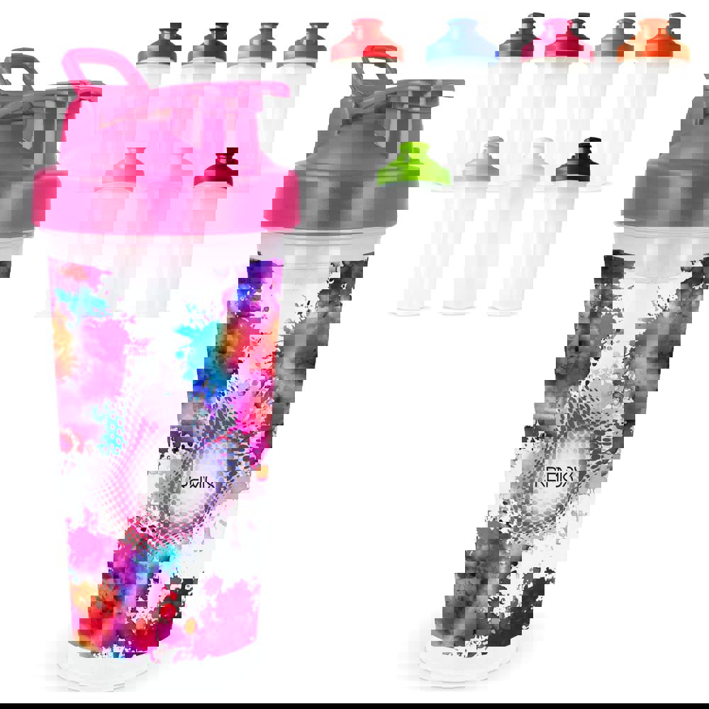 Meng proteïne en supplementen gemakkelijk met deze shakerfles. Het bijgevoegde mengrooster vermindert klontering en zorgt voor een gelijkmatige mix. De lus aan het deksel maakt het eenvoudig om de fles aan een sporttas te bevestigen.