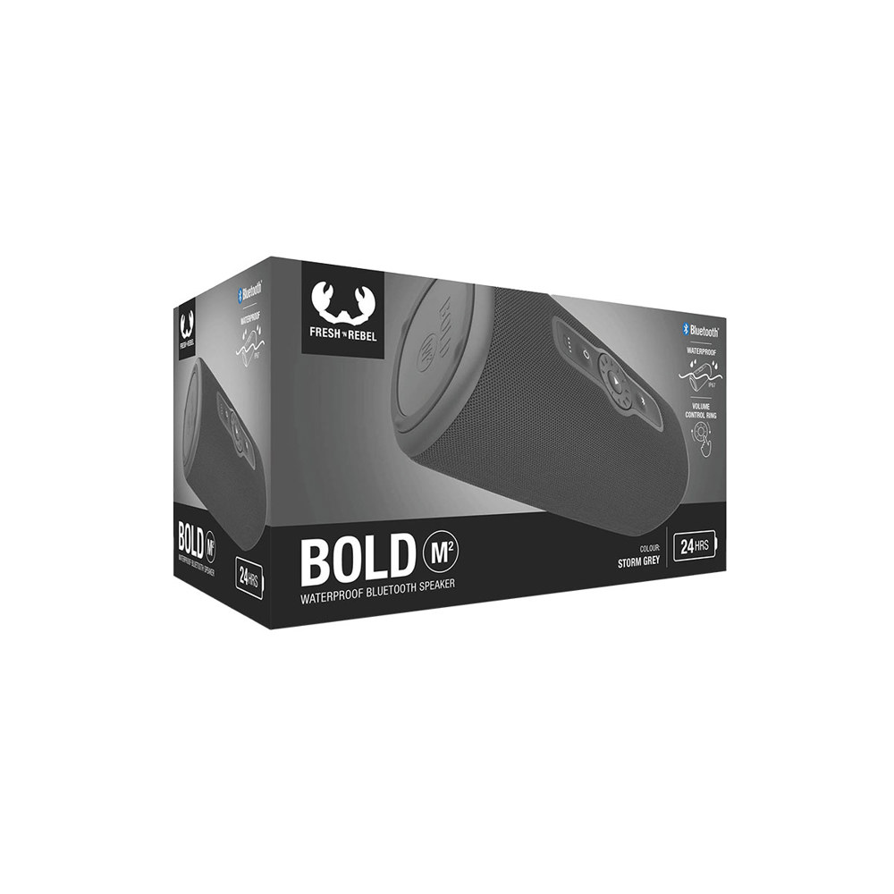 Medium grootte, maximaal geluid. Dat is wat je krijgt met de Bold M2. Een compacte, waterproof speaker die een indrukwekkend geluid levert dankzij de 12° gekantelde positie van de driver. Verdubbel het volume door twee Bold M2 speakers aan elkaar te koppelen of speel om de beurt muziek af vanaf twee verschillende apparaten. Gebruik het intuïtieve wiel bovenop de speaker om het volume te regelen en laat het feest beginnen.