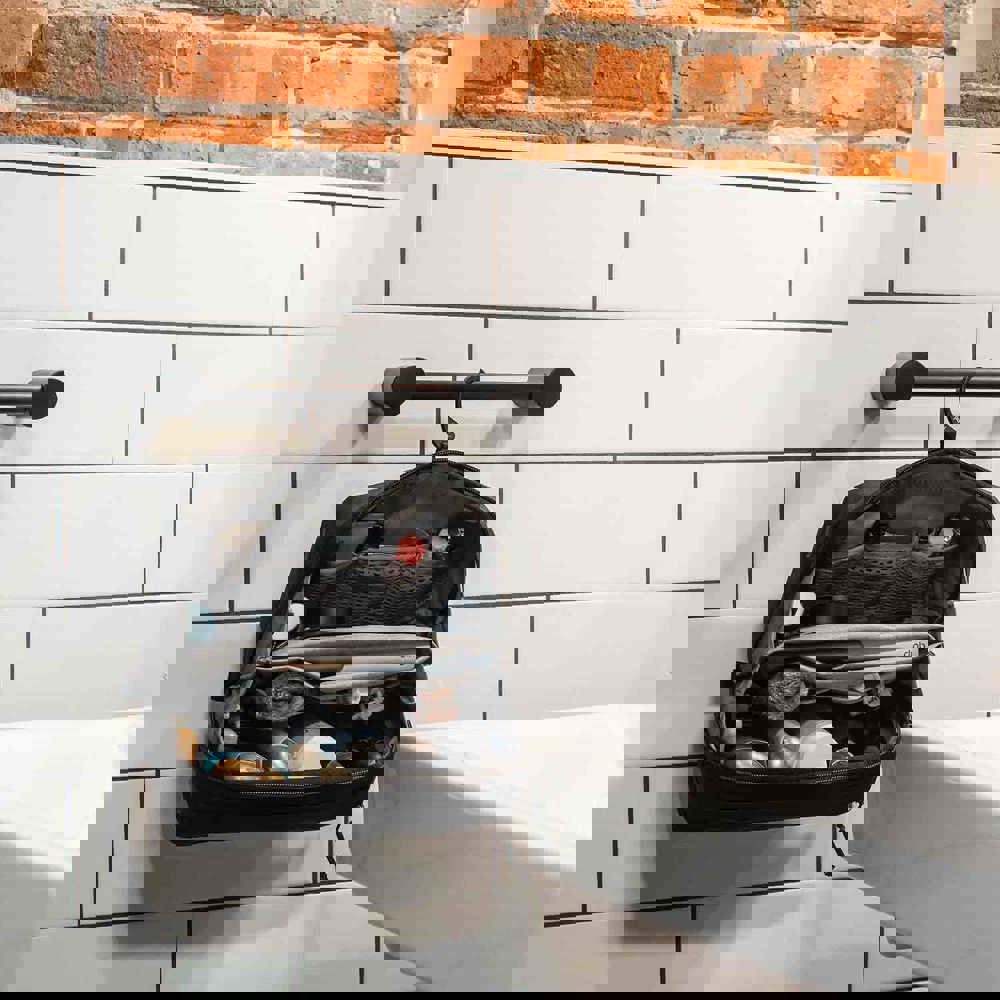 Bij het ontwerpen van de klassieke Wash Pouch heeft Peak Design gestreefd naar het creëren van een toilettas met de perfecte balans tussen elegante eenvoud en doordachte functionaliteit. Dankzij het gebruik van duurzame, weerbestendige, eenvoudig te reinigen materialen die water en vlekken afstoten, kan de Wash Pouch een stootje hebben en er jarenlang brandschoon uitzien. De weerbestendige UltraZip maakt het mogelijk dat de tas extra ver open kan, waardoor je volledig zicht hebt op en toegang hebt tot je spullen. De UltraZip kan tientallen jaren gebruik weerstaan dankzij zijn speciale slijtvaste draad. De tas staat rechtop op een toonbank of hangt aan een opbergbare aluminium haak. Een netwerk van interne TPU-gecoate nylon mesh zakken, een interne ritssluitingszak en een magnetisch afgesloten tandenborstelzak houden items georganiseerd en schoon. Bovendien kunnen alle zakken binnenstebuiten worden gekeerd voor grondige reiniging in geval van morsen. Externe ritssluitingszak voor een scheermes of ander item. Fair Trade Certified en 100% koolstofneutraal. De Wash Pouch kan gepersonaliseerd worden met een thermal print.