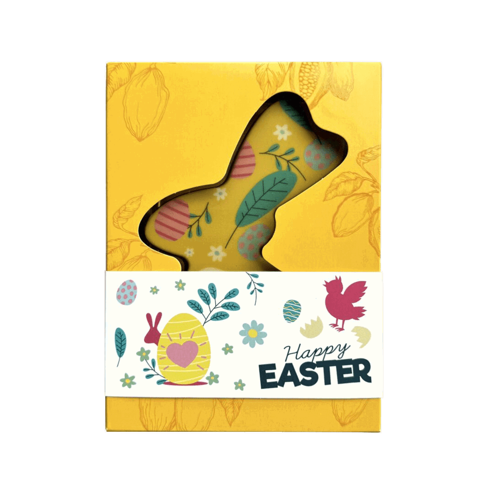 Een vrolijke, internationale paasgroet — maar dan persoonlijk. Dit ChocoTelegram van 14 melk/witte blokjes vormt de tekst “HAPPY EASTER”, met jouw eigen logo op een extra chocoladeblokje. Een klein gebaar met grote impact: feestelijk, professioneel én vooral héérlijk. Perfect als relatiegeschenk, teamverrassing of snelle Paas-oppepper.