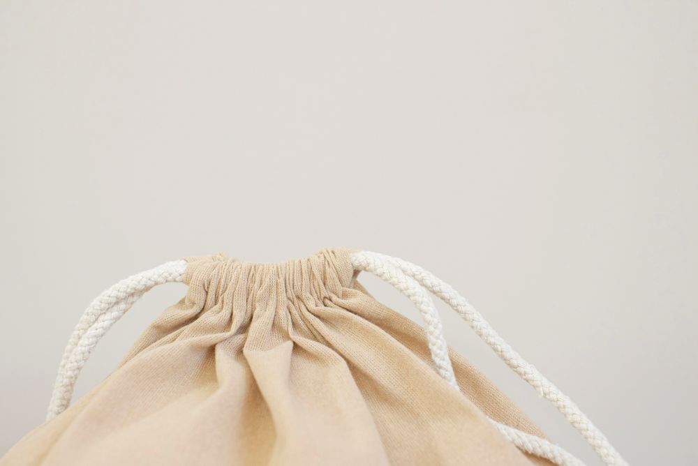Gerecyclede katoenen trekkoordtas in effen kleur. Stevige koorden en verstevigde hoeken. Gemaakt van 100% gerecycled katoen.