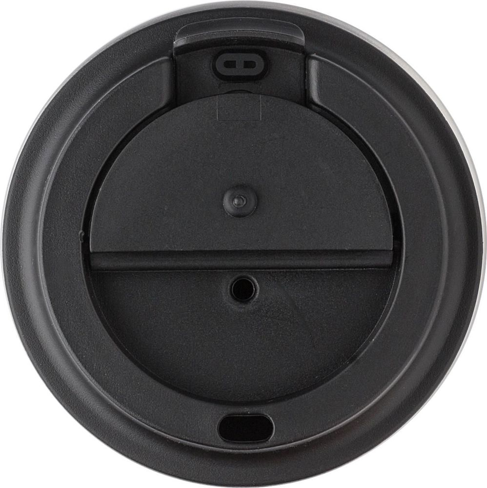 Roestvrijstalen en PP reisbeker (350 ml). Het PP-deksel heeft een siliconen sluitring met een opklapbare sluiting bovenop. Individueel verpakt in een bruine kartonnen doos.