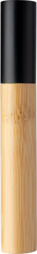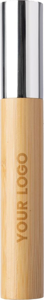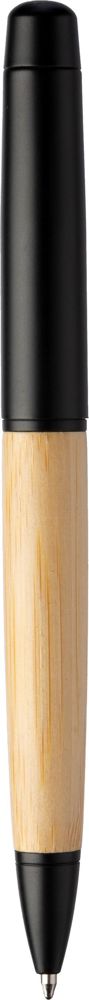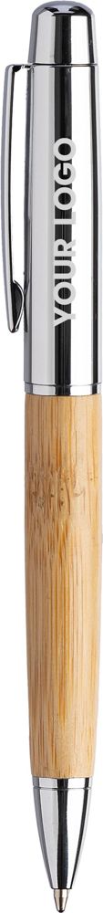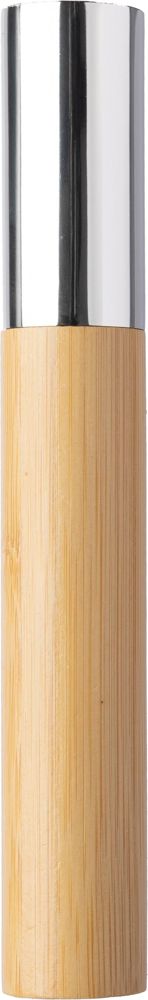 Roestvrijstalen draaibalpen met bamboe handgreep in een bamboe en aluminium koker. Inclusief metalen Parker blauwe navulling. Individueel verpakt in een bruine kartonnen doos.
