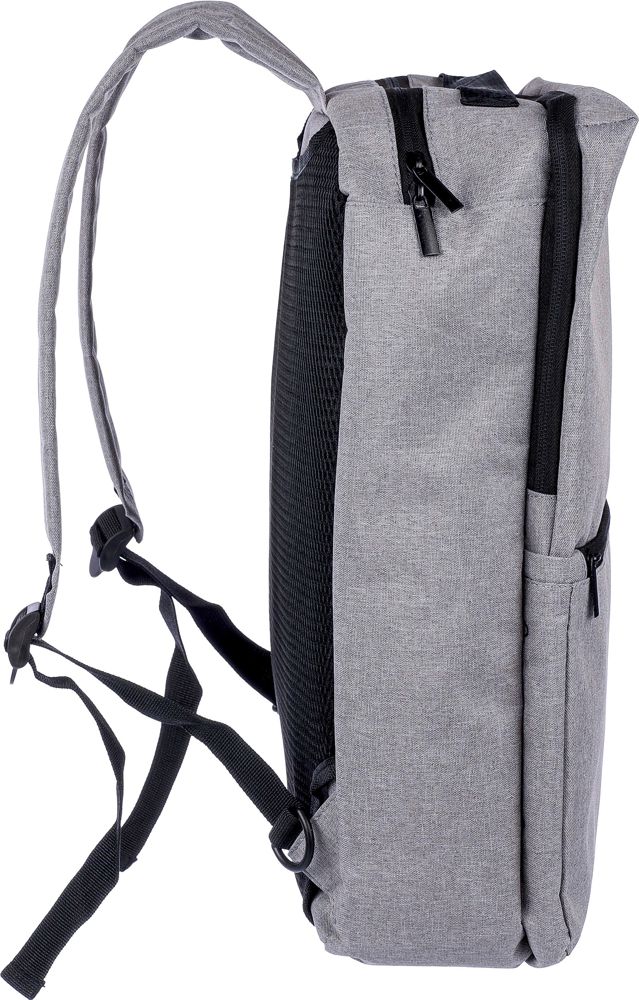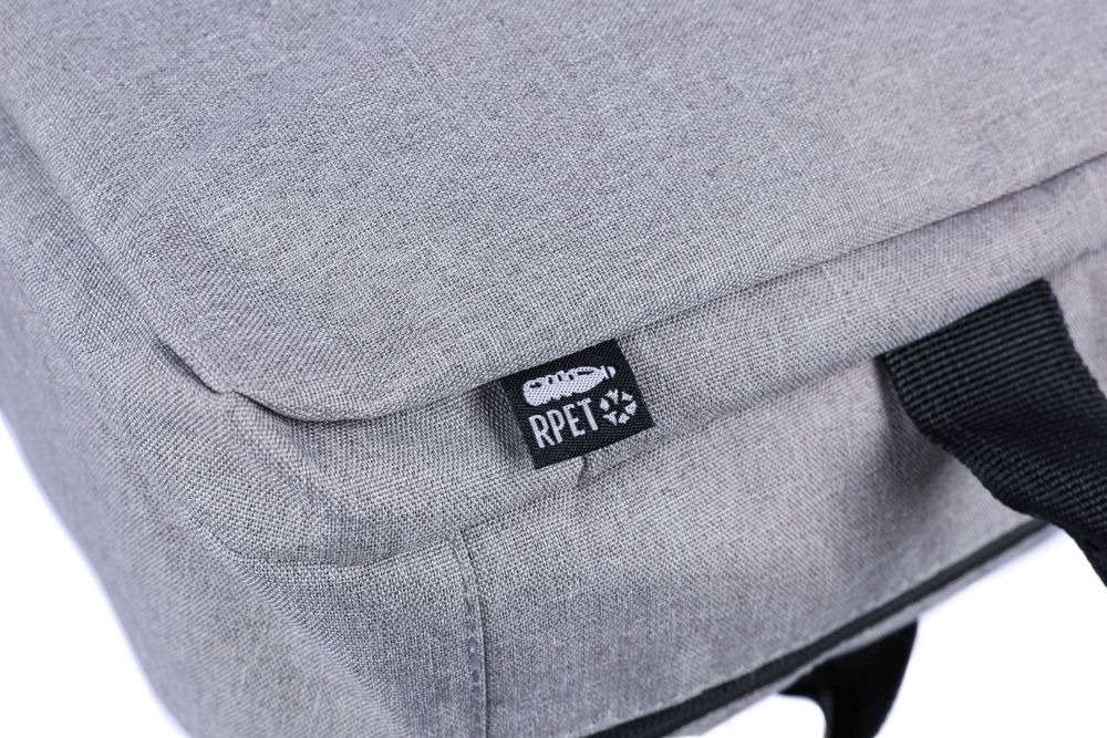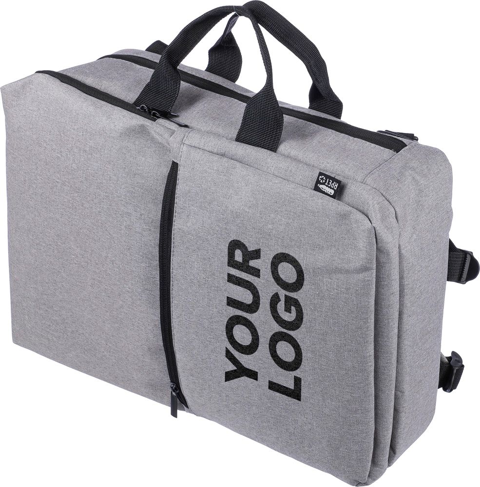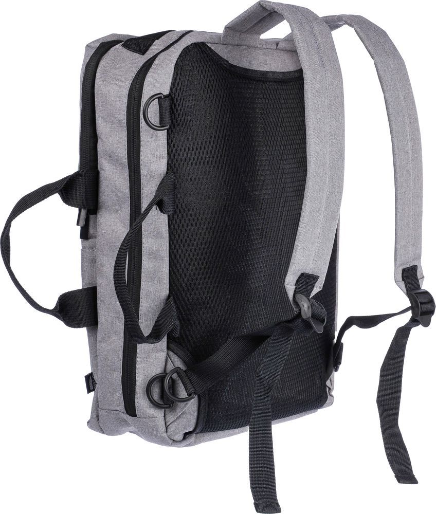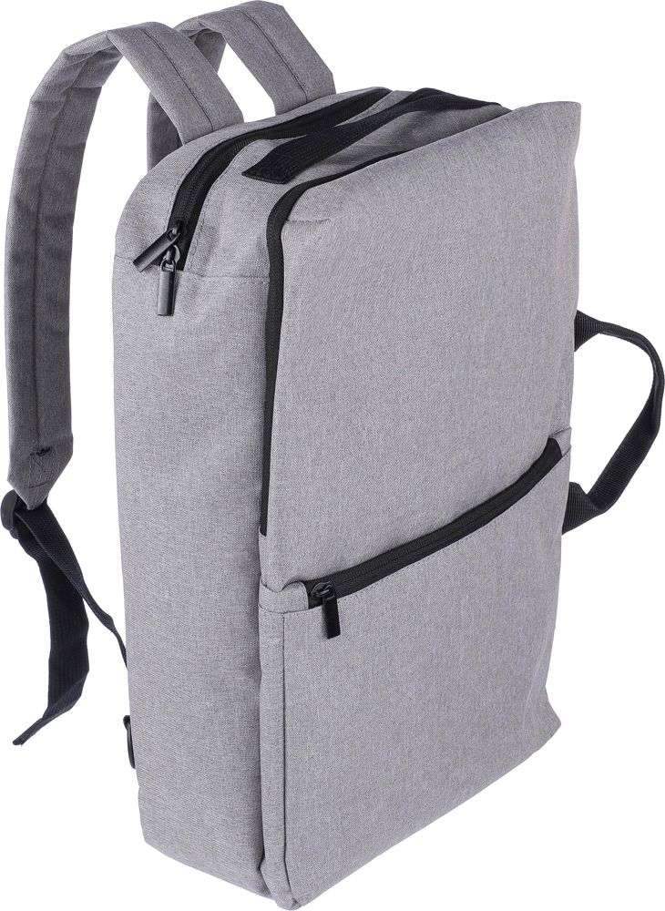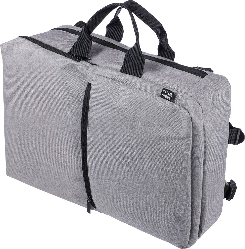 rPET polyester (300D) rugzak met 210D gevoerd laptopvak (15 inch) aan de binnenkant. Cabin-proof. Met draaglus aan de bovenkant, verstelbare schouderriemen en twee draaggrepen aan de zijkant. Verstelbare riemen kunnen achter de voering worden gestoken voor een draagfunctie met zijhandvatten. Laptopvak met klittenband en klein vak met ritssluiting. Met ventilerend gewatteerde rugzijde. Draaggewicht ca. 8 kg. Inclusief rPET-label.
